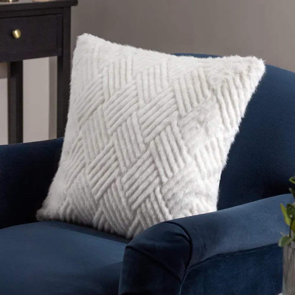 The Sonnet cushion offers luxurious comfort with its cut faux fur construction, featuring a plush front and coordinating velvet reverse. Its soft faux fur surface provides texture and warmth, while the 100% polyester material ensures durability. The hidden zip closure maintains clean lines, and the jet black finish adds sophisticated contrast to any seating arrangement.