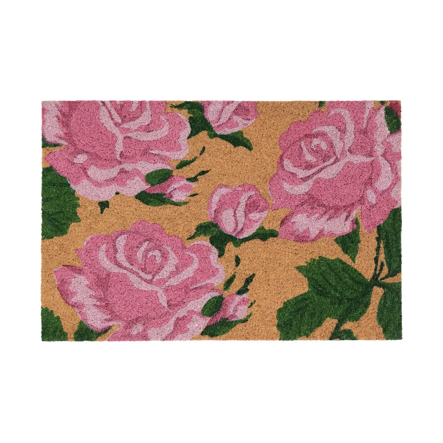 The Printed Coir Door Mat offers durability with its sturdy coconut fibre construction, featuring exterior paint prints that provide longevity compared to food dye alternatives. Its PVC backing provides slip resistance and stability, while the natural coir effectively absorbs moisture and removes dirt from footwear. The mat combines practical scraping function with decorative appeal, suitable for both indoor and sheltered outdoor areas.