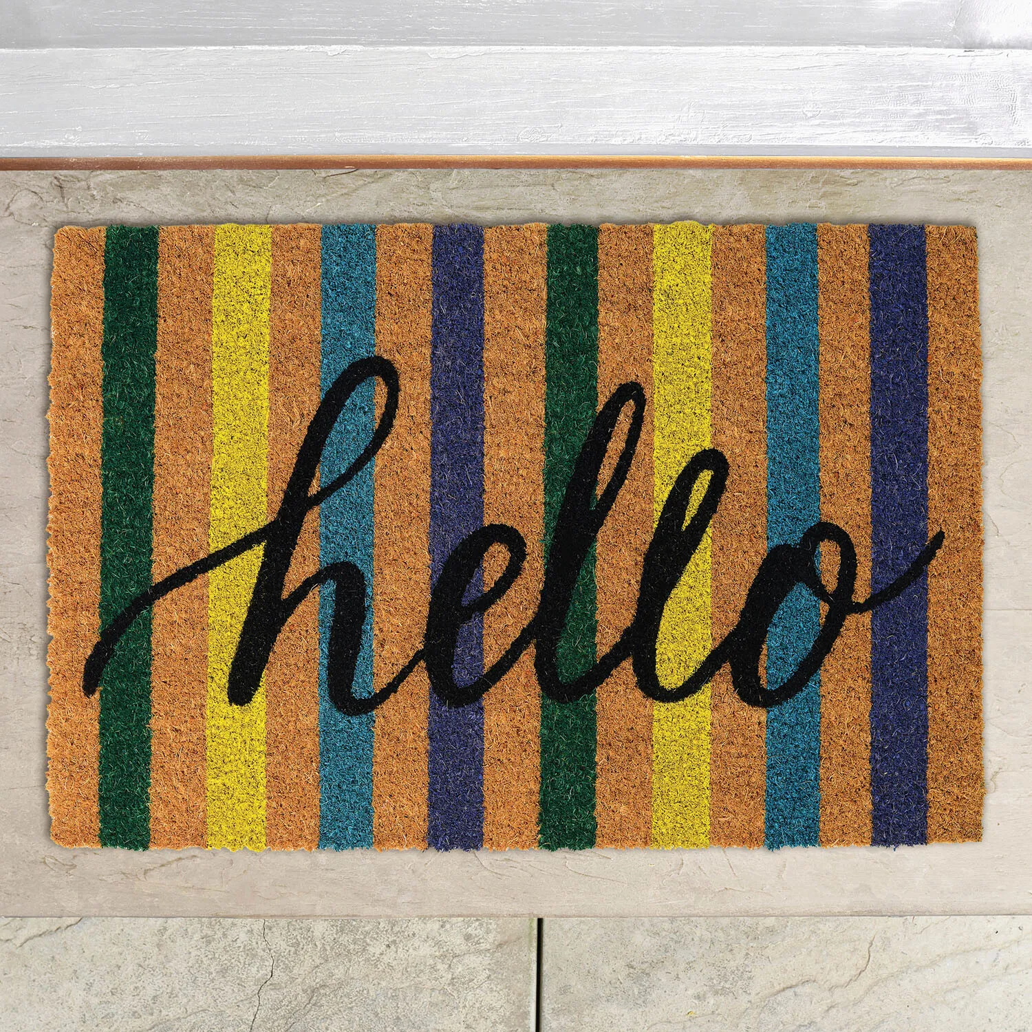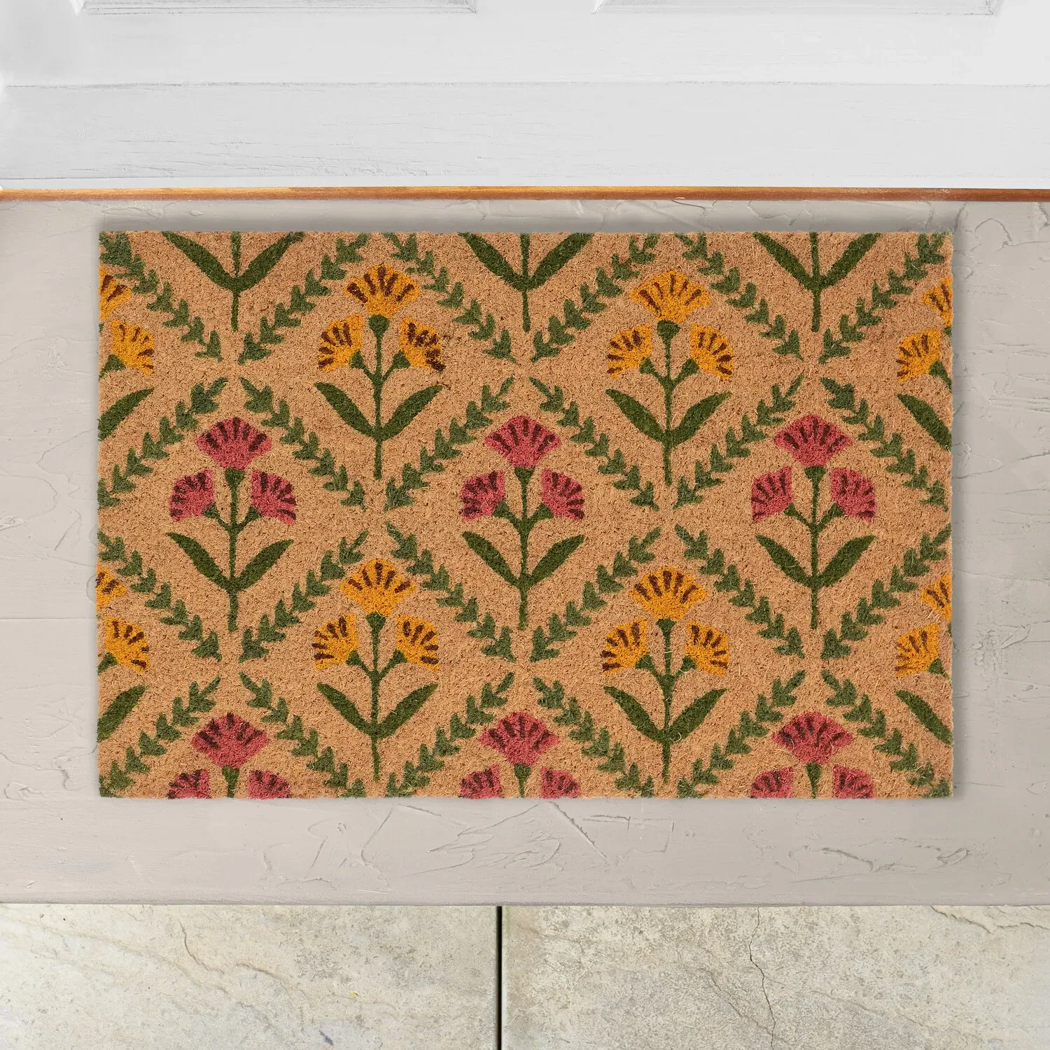 Transform your home's entrance with the Printed Coir Mat, a delightful way to greet visitors. Available in two assorted designs, this eye-catching doormat is made by using exterior paints that adhere effectively to the coir, providing longevity compared to mats made with food dyes. Perfect for indoor and sheltered outdoor areas, it features impressive scraping capabilities to effectively remove dirt and moisture. Its absorbent surface and non-slip PVC backing enhance functionality and style, making it an ideal choice for an entryway.