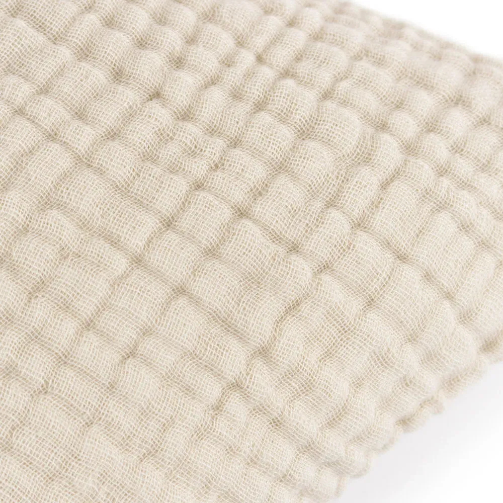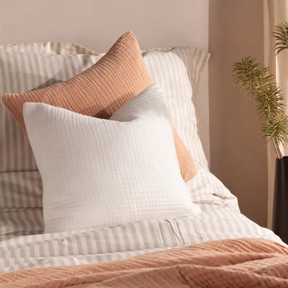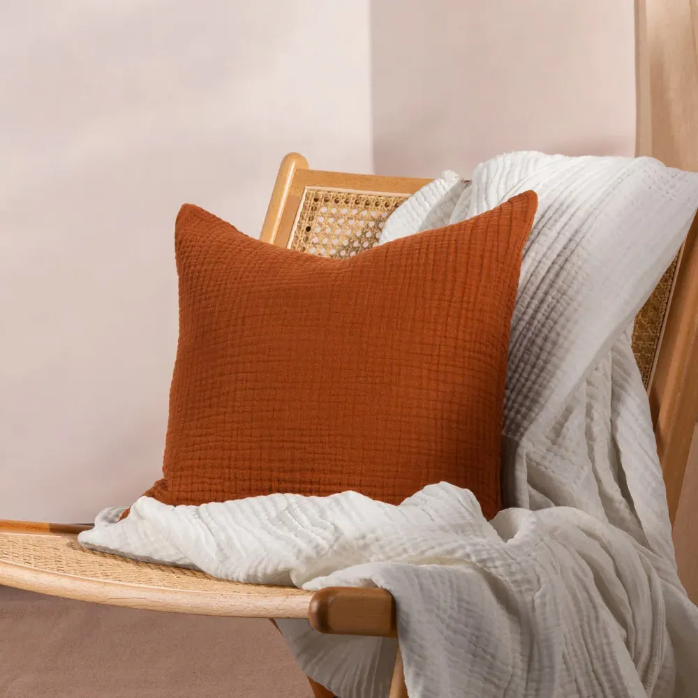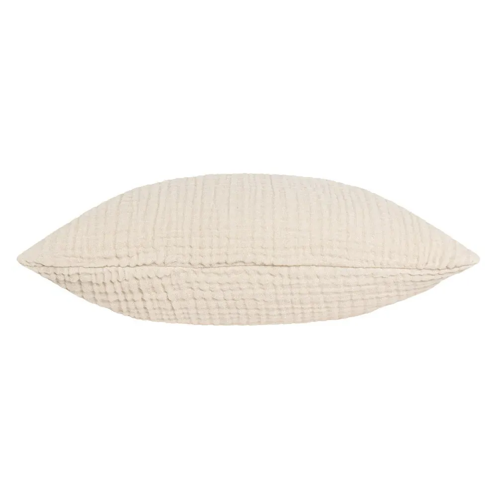 The Lark Muslin Cotton Cushion offers comfort with its four layers of ultra-soft muslin fabric. Its slightly ribbed texture provides subtle lines and a lightweight feel, while the knife edging adds a clean finishing touch. The hidden zip closure suits easy maintenance, and the soft muslin construction ensures breathability.
