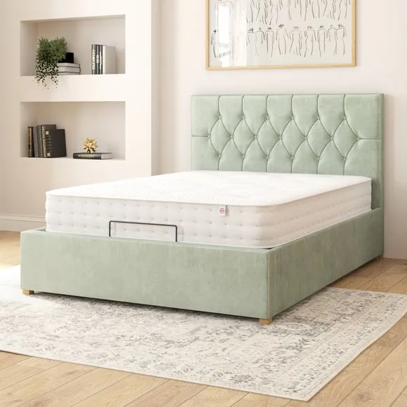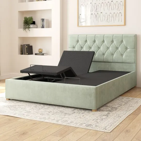 * Electronic Adjustable Bed* Wireless remote control for easy adjustments* Two Programmable memory positions* Available in Single, Double, Kingsize and Super Kingsize* Plush Velvet Upholstered Finish Introducing the Aspire Olivier Plush Velvet Electronic Adjustable Bed Frame. Meticulously upholstered by hand in the UK, this fabric bed features a sleek diamond headboard design, exuding both contemporary elegance and personalized comfort. Designed to cater to your individual needs, this bed frame boasts an advanced 4-part action system with a dual-motor setup. Whether you're adjusting the back, head, legs, or feet, each movement is smooth and seamless, enhancing your overall sleep quality. Operate your bed with ease using the wireless remote control, complete with a torch feature for effortless navigation in low-light conditions. The backlit keypad adds a modern touch and enhances visibility during night-time adjustments. Experience the perfect sleep setup at the touch of a button with two programmable memory positions, allowing you to save your preferred sleeping and relaxing configurations. Assembling your dream bed is simple and straightforward, ensuring that you spend less time setting up and more time enjoying the comfort and convenience of your personalized sleep haven. NOTE: The single and double bed sizes use a single platform meaning they take one mattress for the whole bed, while the king and super king sizes feature a split mechanism with independently controllable sides. This means that the king and super king will require two mattresses, one for each side of the bed, to ensure that you and your partner can enjoy personalised comfort without compromise.**Please Note:** A wire framed mattress can not be used on this style of bed. This bed s compatible with any fully foam or pocket-sprung mattress that doesn't have an outer wire frame. The single and double bed sizes use a single platform meaning they take one mattress for the whole bed, while the king and super king sizes feature a split mechanism with independently controllable sides. This means that the king and super king will require two mattresses, one for each side of the bed, to ensure that you and your partner can enjoy personalised comfort without compromise.