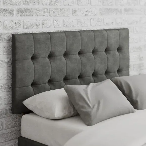 * Linen fabric headboard* Square buttoned headboard design* Contemporary Sinatra range* Hand upholstered with deep padding* Solid mahogany struts* 60cm headboard panel height* 40mm deep polyester padding* Compatible with standard size UK bed bases and divans* Manufactured in the UK Add an embellished look to your bed frame with this headboard from the Sinatra range, offering a relaxing recline whether you’re reading a book or sitting up in bed. Creating a decorative feature, this headboard is hand upholstered in a linen fabric with a contemporary square pattern, deep buttoned design details and deep padding for added comfort. Handcrafted with a 15mm thick panel and with solid mahogany struts ensure your headboard is sturdy and long lasting for years to come and the deep polyester padding will add a comfortable and supported surface. Available from single to super king sizes, this headboard is suitable for all standard bed bases making it a convenient and simple upgrade to your existing bed frame and a range of subtle colours make it a versatile choice for various bedroom aesthetics.
