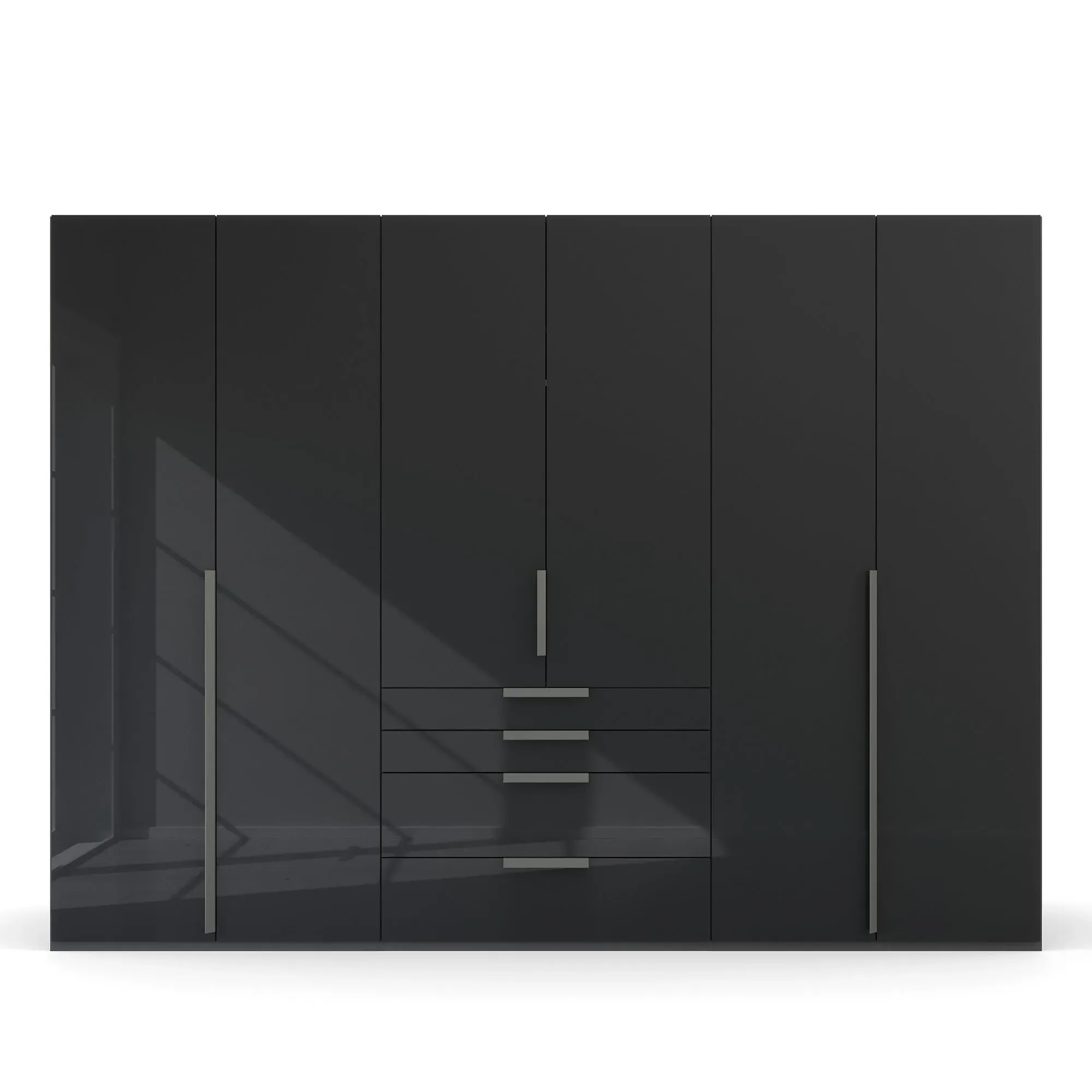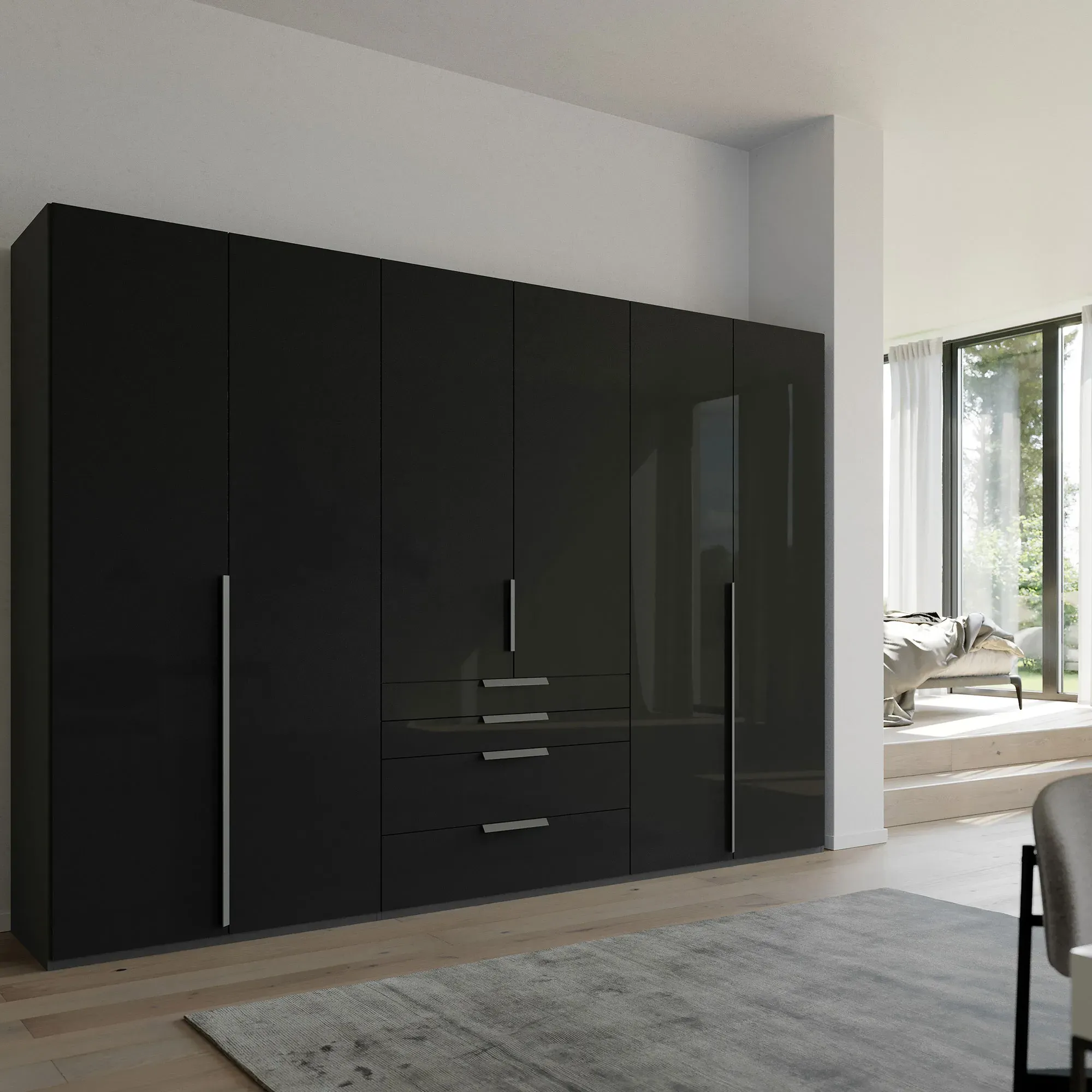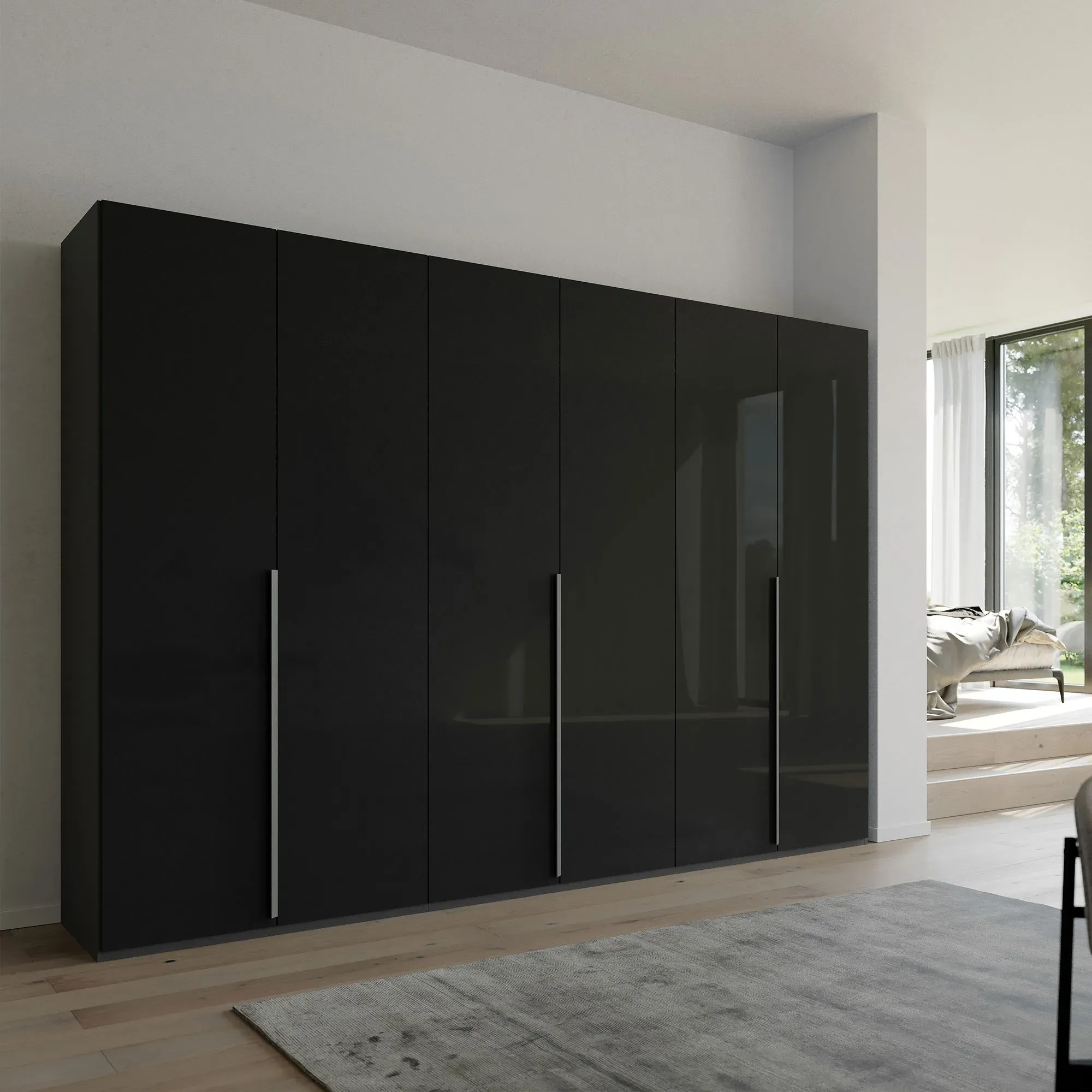 Engineered Wood And Veneer, Coloured Front. Frans 6 Door 4 Drawer Wardrobe 301Cm, Black | Barker & Stonehouse