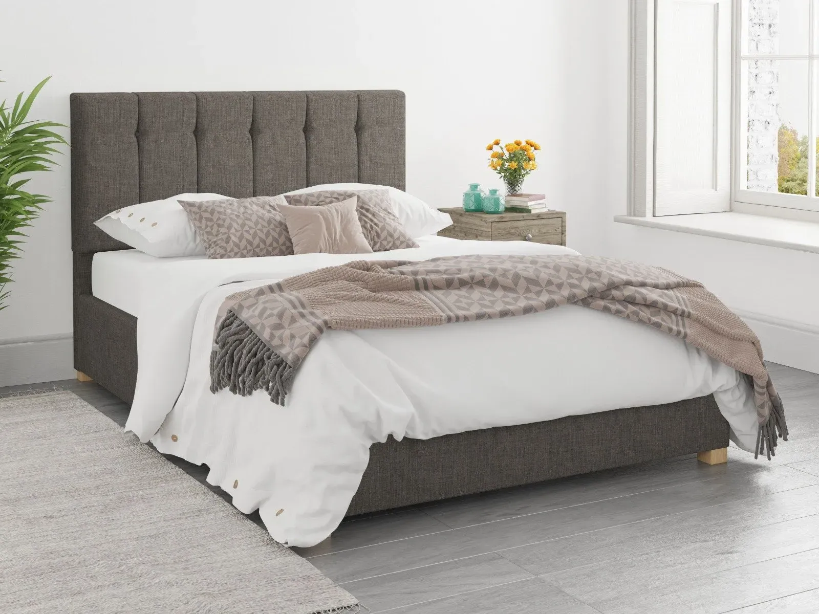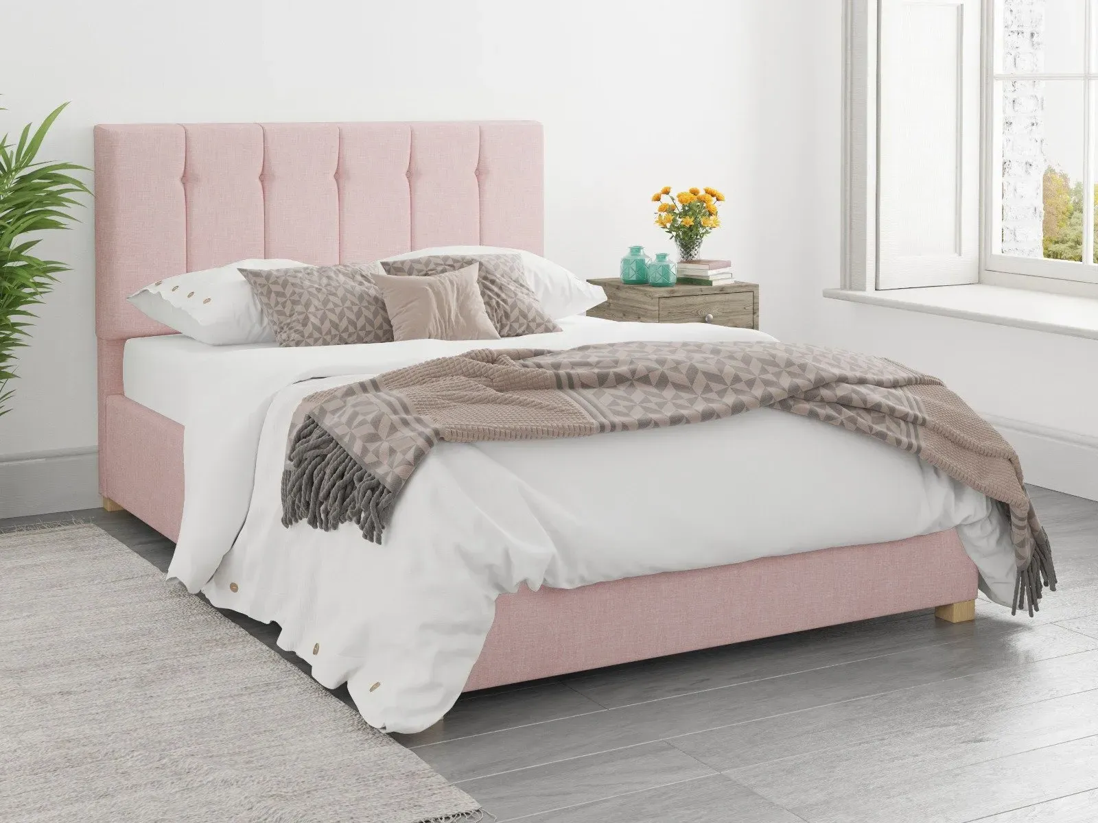 Aspire Hepburn Ottoman Bed The Aspire Hepburn Ottoman Bed Quality upholstered ottoman storage bed hand crafted in the UK. Featuring chunky upholstered panels, a deep foam padded headboard and hand carved and varnished hard wood feet. Quality sprung slats improve comfort and mattress lifespan. The slats are manufactured with a multi-layer construction for superb durability and lifespan. The easy lift ottoman mechanism is powered with quality gas pistons enabling the storage to be accessed with minimal effort. Once the bed is raised the pistons will hold it in place allowing hands free access to the large storage area. A luxurious, deep padded headboard with a classic buttoned design. The deep padding ensures maximum comfort and support when sat up in bed. Choose from a selection of stylish fabrics with options for every taste and d cor. The elegant design is finished off with stylish, hardwood feet hand carved and hand varnished in the UK. Available fabric of choice: Classic Fabrics Push Velvet Firenza Velour Mirazzi Velvet Malham Weave Signature Fabrics Kimiyo Linen Eire Linen Saxon Twill Pure Pastel Cotton Yorkshire Knit DIMENSIONS Bed Size Height (cm) Width (cm) Depth (cm) Weight (lbs) Single (3') 106.5 91 209 55.13 Small Double (4') 106.5 129.6 209 66.15 Double (4'6) 106.5 146.6 209 77.18 Kingsize (5') 106.5 159.6 219 88.20 Superking (6') 106.5 189.6 219 99.23