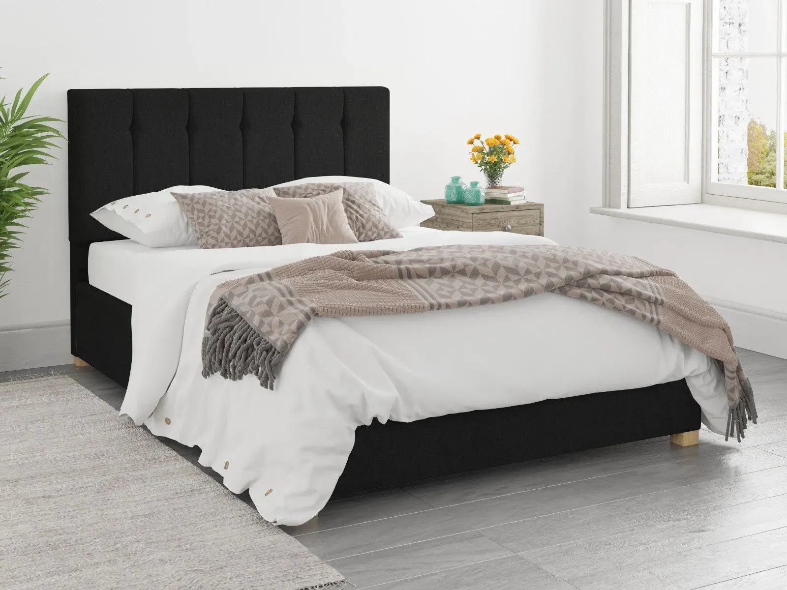 The Ottoman Bed combines luxurious comfort with practical storage, featuring chunky upholstered panels and a deep foam padded headboard with classic buttoned design. Its gas piston mechanism provides effortless access to the large storage area beneath, while quality sprung slats with multi-layer construction enhance mattress support and durability. The hand-carved hardwood feet add stability and style. W91 x D209 x H106.5 cm