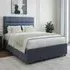 The divan base offers solid platform support with its firm foundation construction, featuring chrome fittings and smooth gliders. Its universal design allows headboard and storage placement on any side, while the platform top ensures reliable mattress support. The linen upholstery adds durability and the base provides a stable foundation for restful sleep.