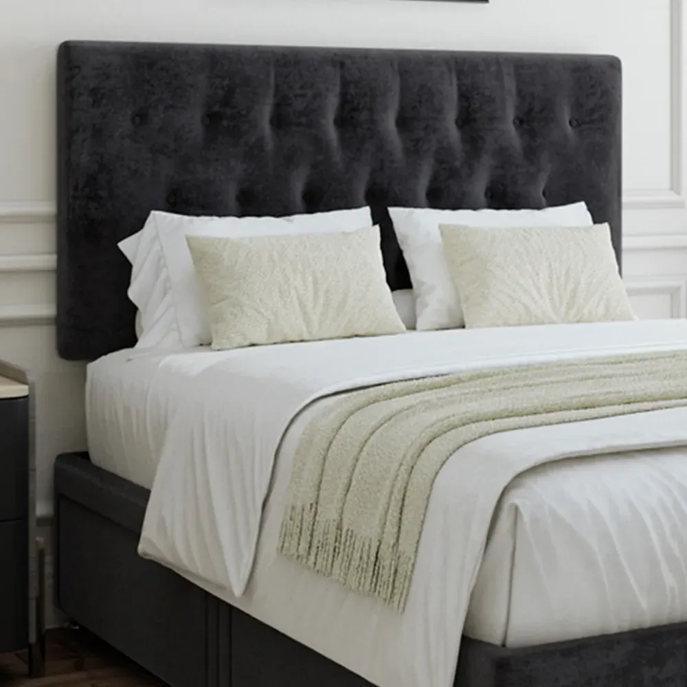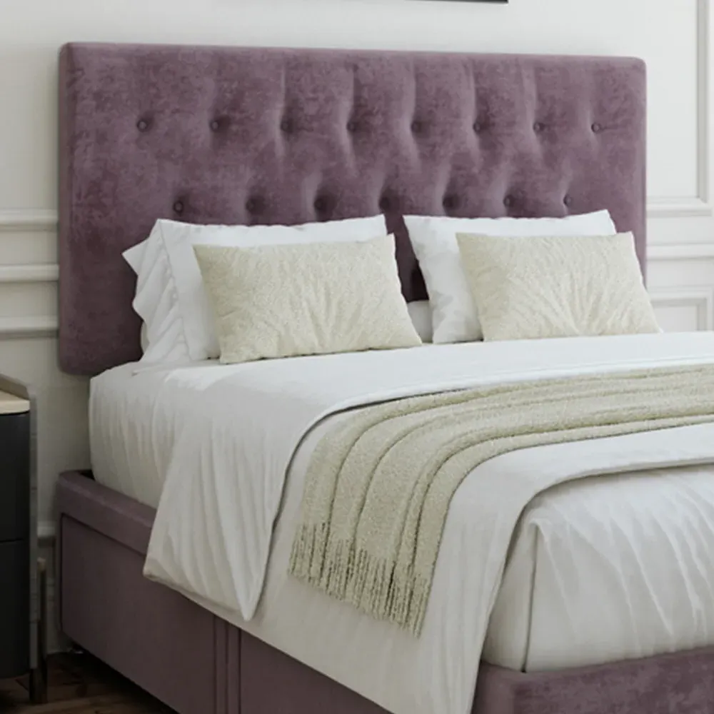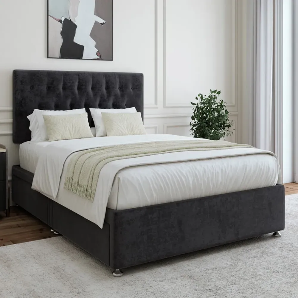 A solid platform top base and headboard from one of the UK's leading manufacturers. Providing support and a firm foundation for your mattress. Finished with chrome fittings and gliders. This divan is universal meaning the headboard and can be placed on any side. It can be purchased with 0, 2 or 4 drawers. Available in an array of fabrics and colours.