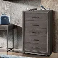 The Modum Storm 5 Drawer Chest features definite lines with its high-tech Italian design, creating a dynamic storage solution. Its wooden construction provides solid durability, while the five-drawer layout offers ample organization space. The chest combines functionality with contemporary aesthetics, and the Italian craftsmanship ensures quality construction throughout.