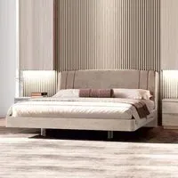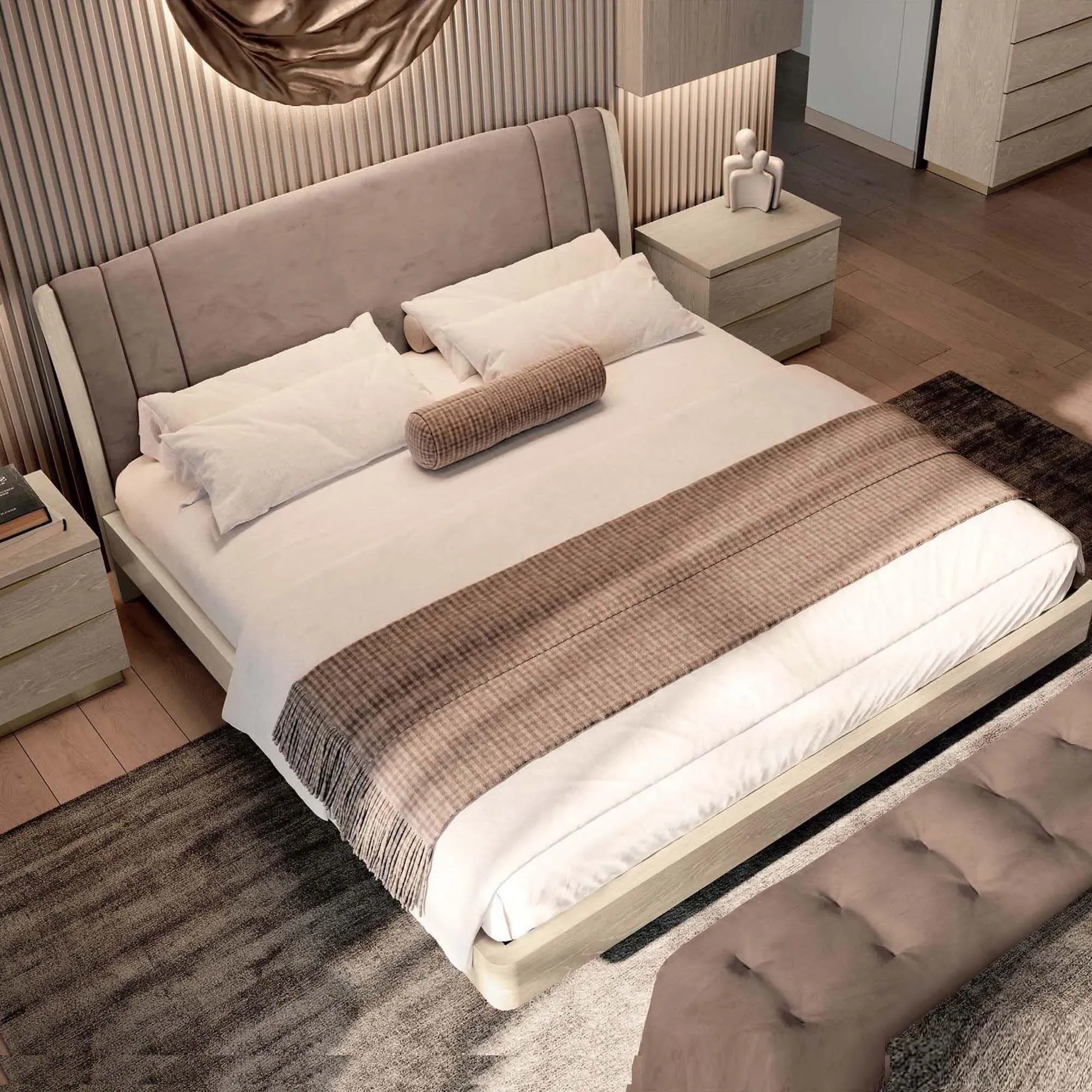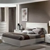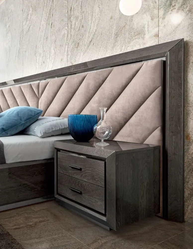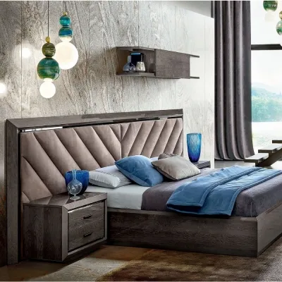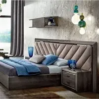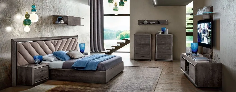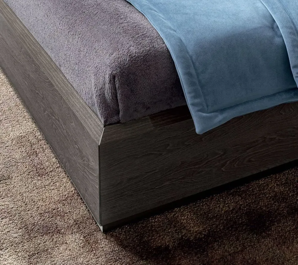 The Modum Tekno bed frame features contemporary Italian design with clear-cut lines and a technical aesthetic. Its silver birch finish adds natural wood tones with modern appeal. The frame combines dynamic styling with quality construction, while the finish provides durability and visual interest for contemporary bedroom settings.