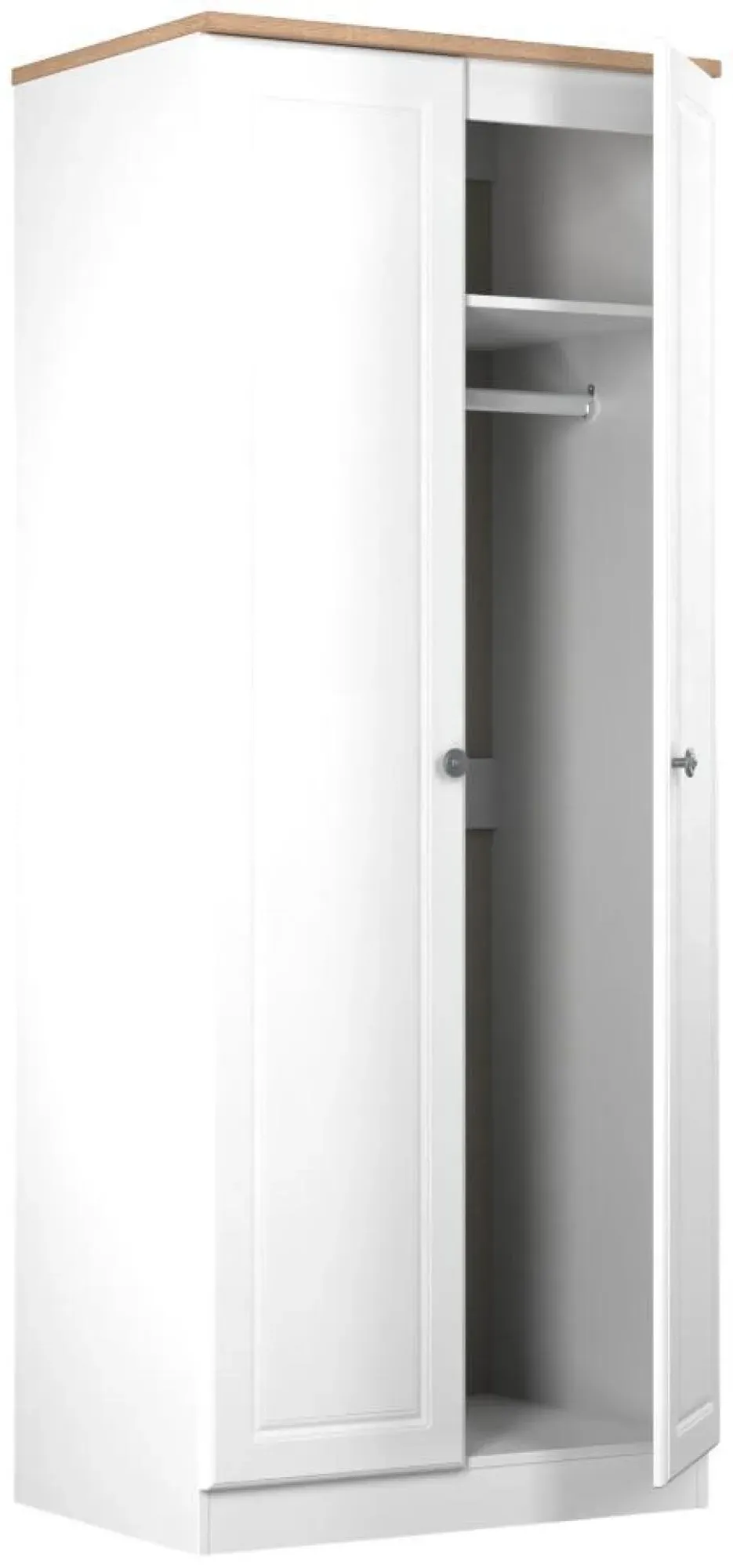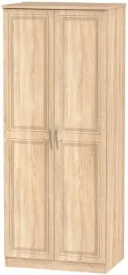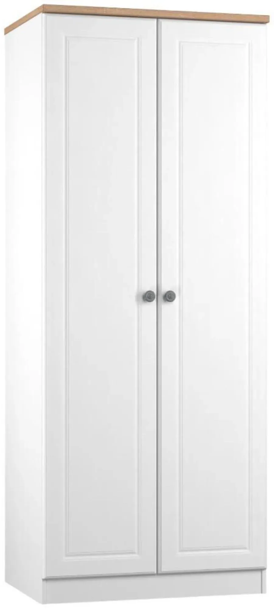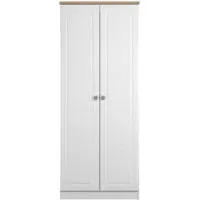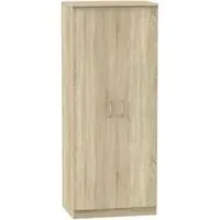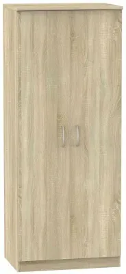 The Devon 2 Door Wardrobe offers ample storage with its Bardolino oak effect finish and clean lines. Its two-door design provides easy access to hanging space, while the particle wood construction adds durability. The plain front suits various bedroom styles, and the compact frame ensures reliable daily use. W 73.8 x D 51.5 x H 182.4 cm
