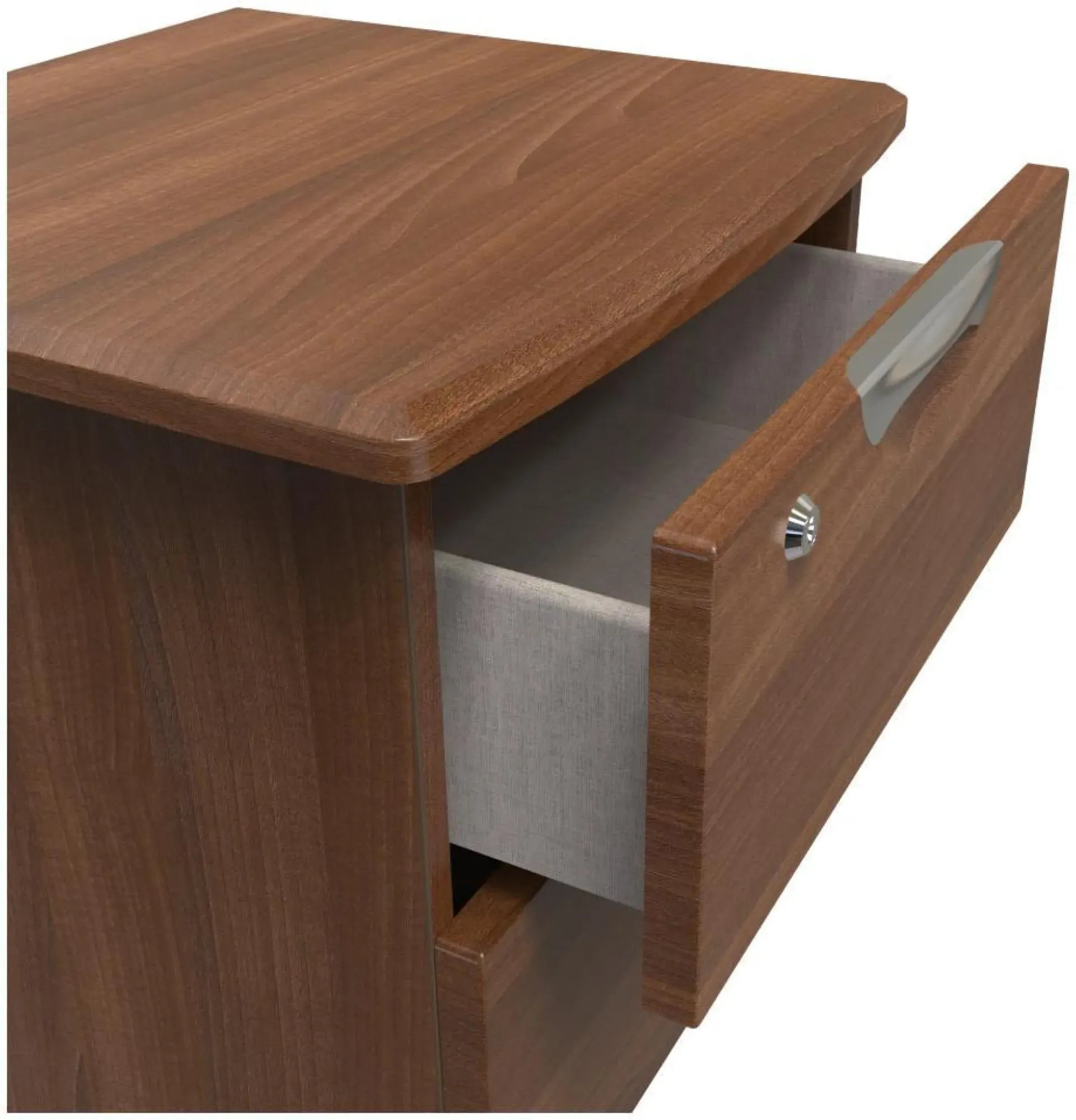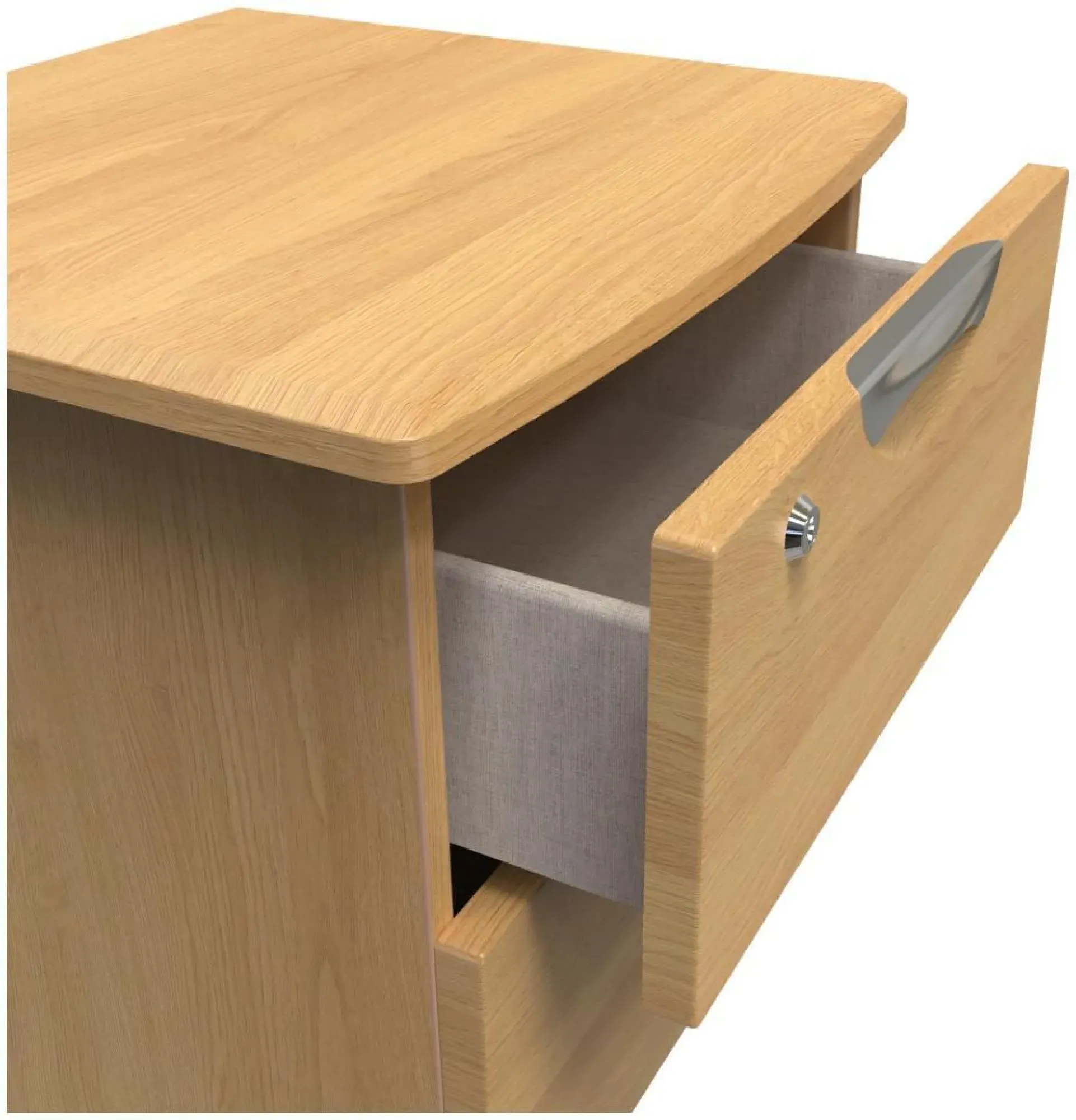 The Flora bedside cabinet offers practical storage with its two spacious drawers, finished in a sophisticated grey ash effect. The smooth-running drawer mechanisms provide easy access to bedside essentials, while the durable construction ensures long-lasting use. Its compact design suits various bedroom layouts without compromising on storage capacity.