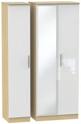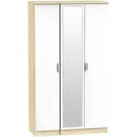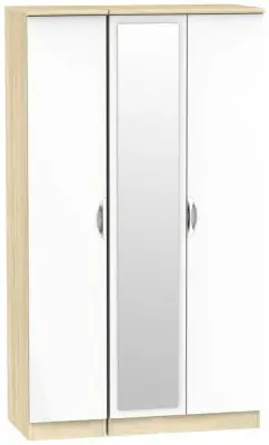 Milan White Gloss and Oak Effect 3 Door Tall Triple Wardrobe - 1 Mirror - MIL147WGBO,available to buy online or at Choice Furniture Superstore UK on stockist sale price. Get volume - discount with fast and Free Delivery,Wardrobe sale Best furniture shop in Leicester,Leicestershire,East Midlands Selling. Deals. Black Friday Furniture Sale, Black Friday Wardrobe Sale