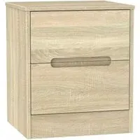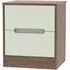 The Monaco 2 Drawer Bedside Cabinet offers quality UK craftsmanship with its fully assembled construction and durable scratch-resistant vinyl finish. Its black drawer fronts provide a bold contrast, while the linen-effect drawer interiors add a refined touch. The cabinet features high-quality, long-lasting runners that ensure smooth operation, and the ready-assembled delivery adds convenience.