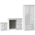 Elevate your child's bedroom with the exquisite Pembroke White 3 Piece Bedroom Set from Welcome Furniture, a perfect blend of style and functionality. This elegant ensemble includes a spacious dressing table and a convenient 2-drawer bedside cabinet, all crafted from high-quality particle wood for durability and longevity. The pristine white finish adds a touch of sophistication and brightens up any room, making it an ideal choice for creating a serene and inviting atmosphere. The dressing table, measuring W 92.8cm x D 40cm x H 78.8cm, provides ample space for grooming essentials and personal items, while the bedside cabinet, with dimensions of W 39.5cm x D 40cm x H 49.8cm, offers practical storage solutions with its two drawers. Perfect for keeping bedtime necessities within easy reach, this set combines practicality with timeless design. The clean lines and minimalist aesthetic of the Pembroke White collection ensure that it will seamlessly integrate into various decor styles, growing with your child through the years. Invest in this versatile and charming bedroom set to create a harmonious and organized space that your child will love coming home to. With its sturdy construction and classic design, the Pembroke White 3 Piece Bedroom Set is an excellent choice for parents seeking both quality and style in children's furniture. However you may find different names used in each store for Pembroke White 3 Piece Bedroom Set with 2 Drawer Bedside & can be found under the name as Cambridge White 3 Piece Bedroom Set with 2 Drawer Bedside Best furniture shop in Leicester,Leicestershire,East Midlands Selling. Deals. Black Friday Furniture Sale, Black Friday Bedroom Sets Sale