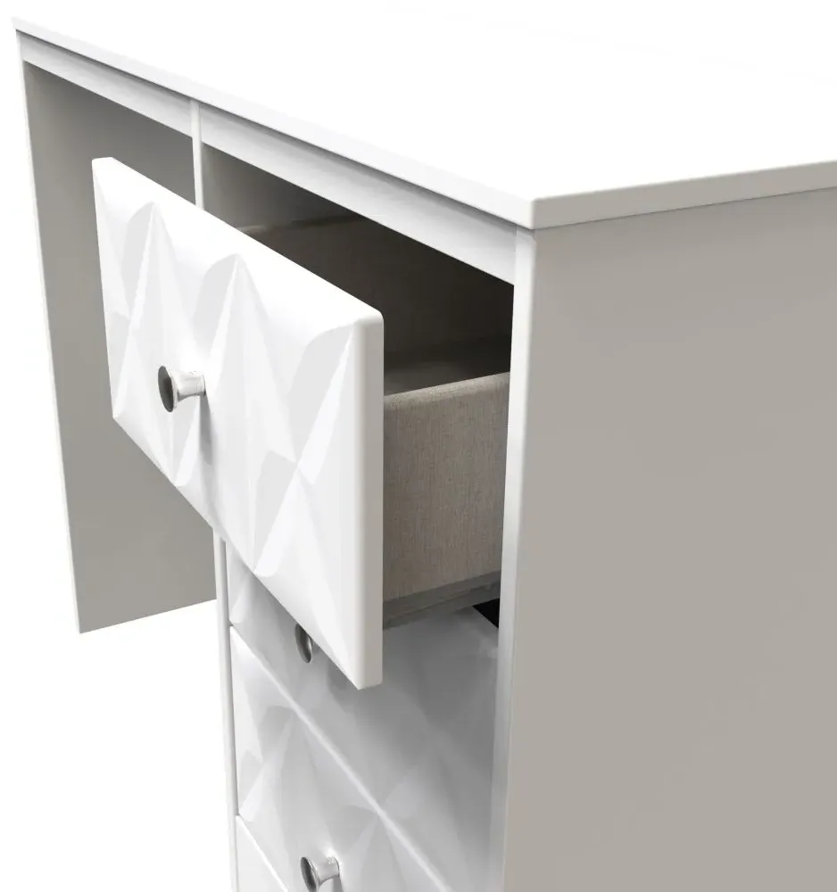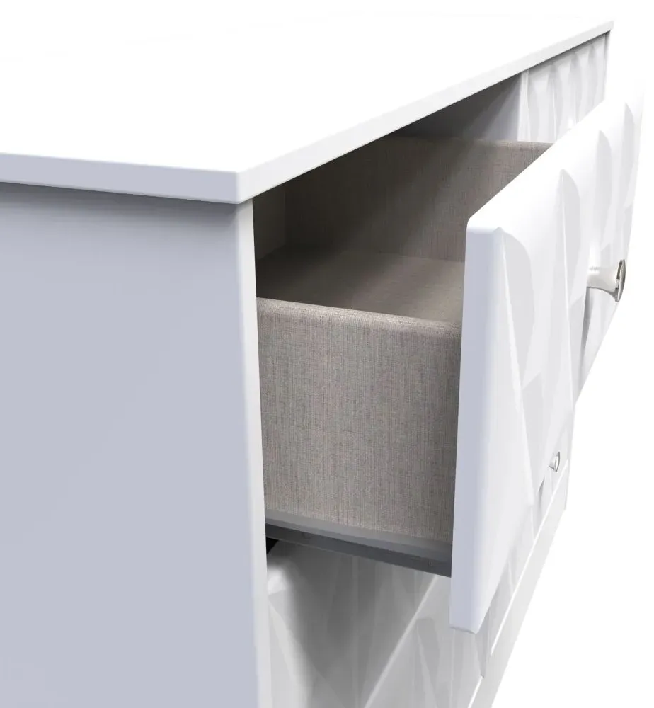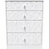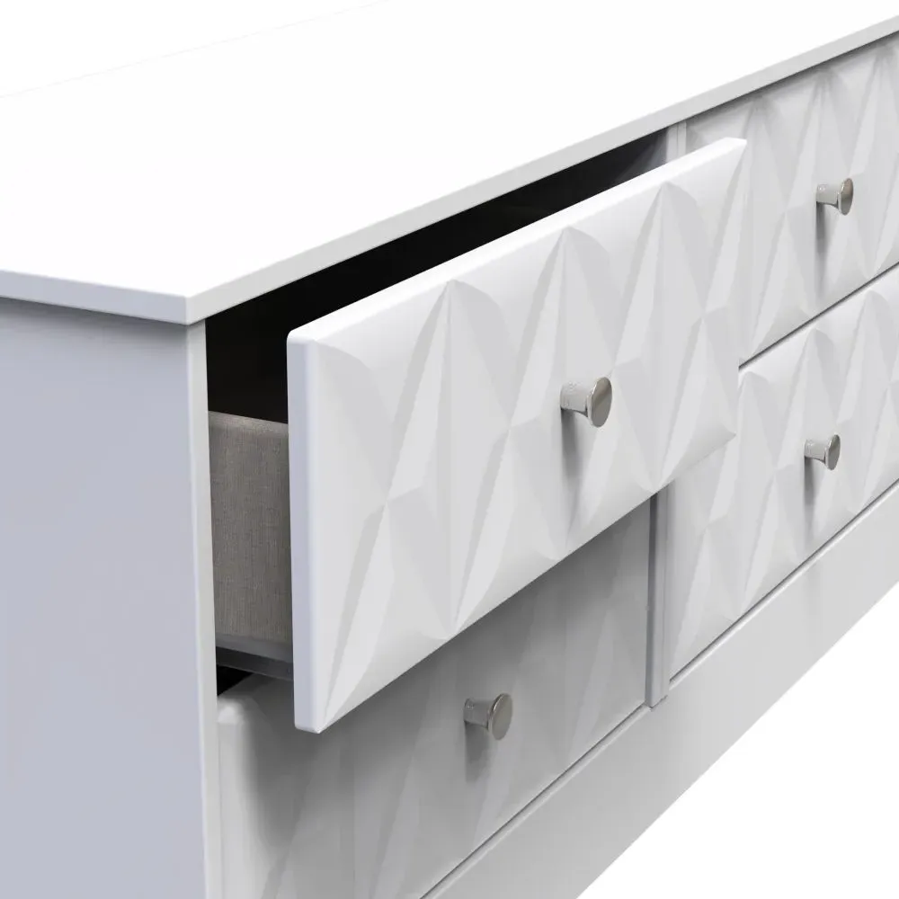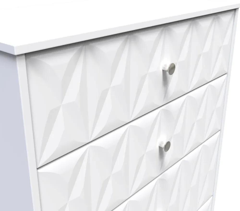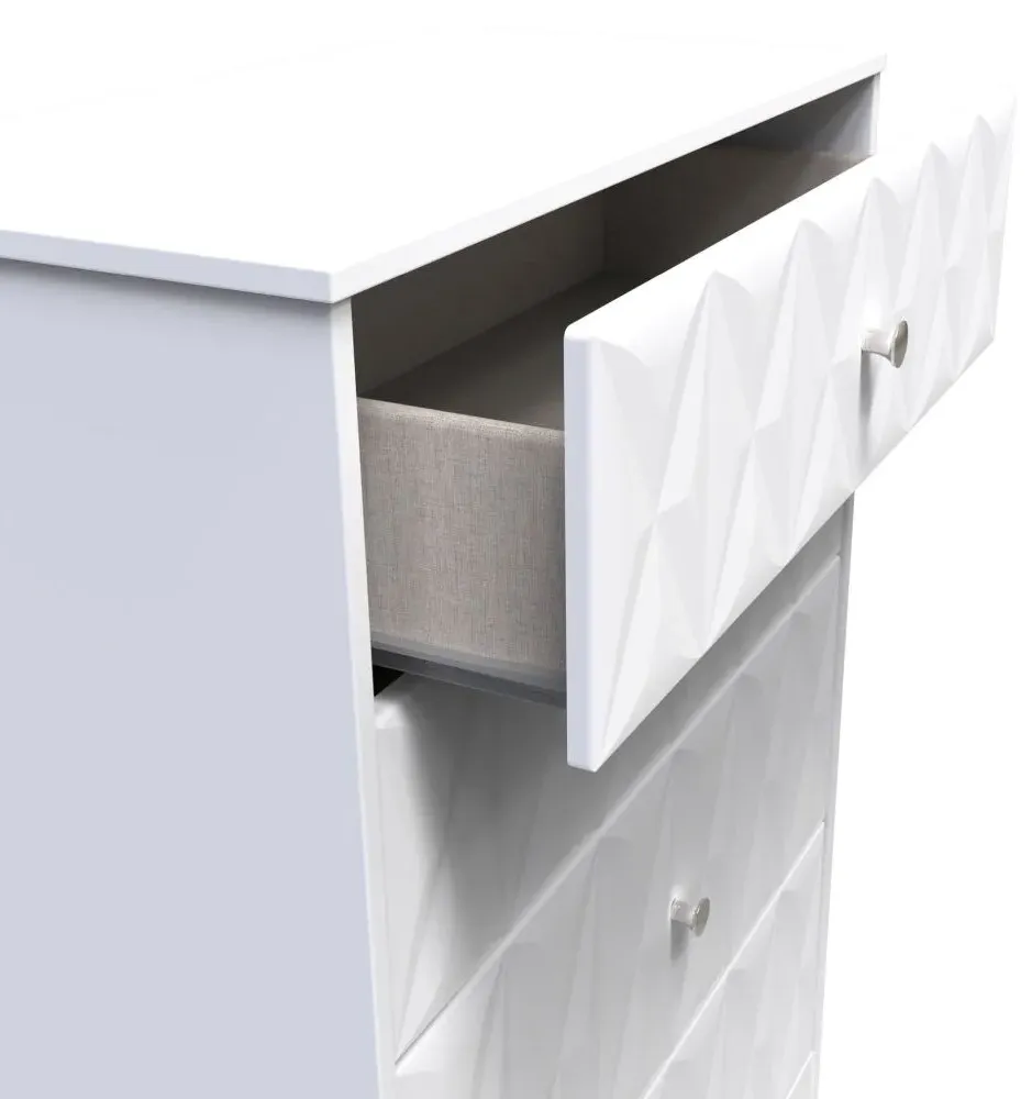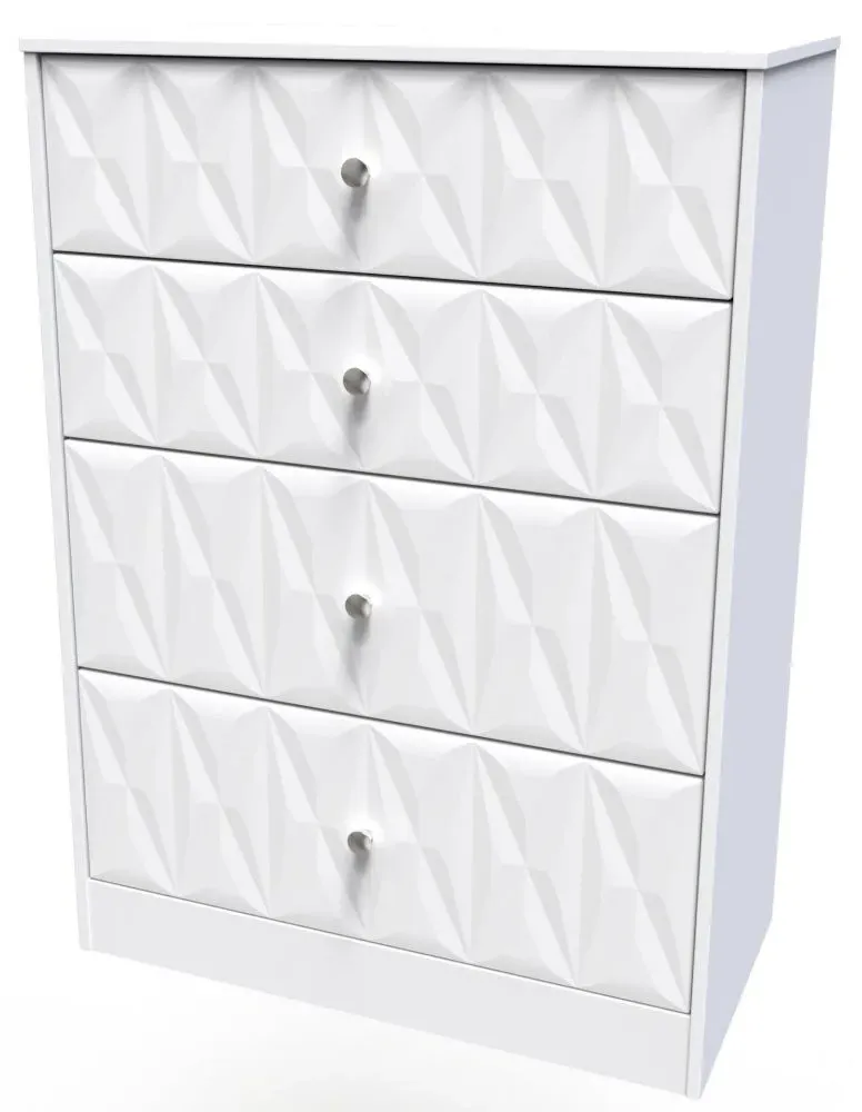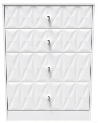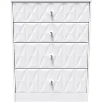 The San Jose 4 Drawer Deep Midi Chest offers generous storage with its four spacious deep drawers, crafted from high-quality MDF for durability. Its matt white finish provides a clean aesthetic, while the deep drawer design maximizes storage capacity without compromising floor space. The smooth-gliding drawers ensure easy access to clothing and personal items, and the minimalist hardware adds sophistication. W 57cm x D 39.5cm x H 106.5cm.