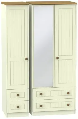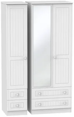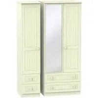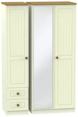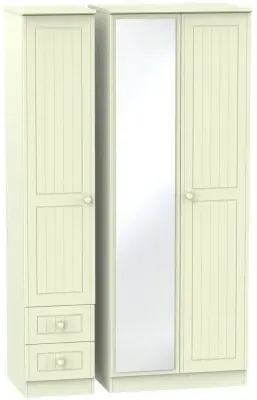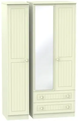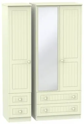 Warwick 3 Door Combi Wardrobe with Mirror and Drawers - Cream