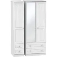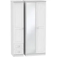The Warwick wardrobe combines practical storage with its three-door configuration, integrated mirror, and left-hand drawer unit. Its cream finish provides a warm appearance, while the combination design offers hanging space, shelving, and drawer storage. The mirror adds functionality for daily use, and the drawer unit provides organized storage for smaller items.