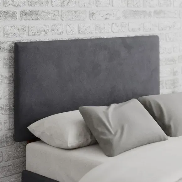 * Plush velvet fabric headboard* Plain headboard design* Minimalist Garland range* Hand upholstered with deep padding* Solid mahogany struts* 60cm headboard panel height* 40mm deep polyester padding* Compatible with standard size UK bed bases and divans* Manufactured in the UK If you’re looking to make a stylish enhancement in your bedroom, the luxurious look of this minimalist style headboard from the Garland range can add plush texture to your bedroom décor for a fresh update. This stylish and understated design features a plain style headboard and is hand upholstered in a high-quality plush velvet fabric and handcrafted with a 15mm thick panel. The solid mahogany struts ensure your headboard is sturdy and long lasting for years to come and the deep polyester padding will add a comfortable plush surface. Available from single to super king sizes, this headboard is suitable for all standard bed bases making it a convenient choice for a simple refresh to your existing bed frame and a range of stylish colours make it a versatile choice for various bedroom aesthetics.