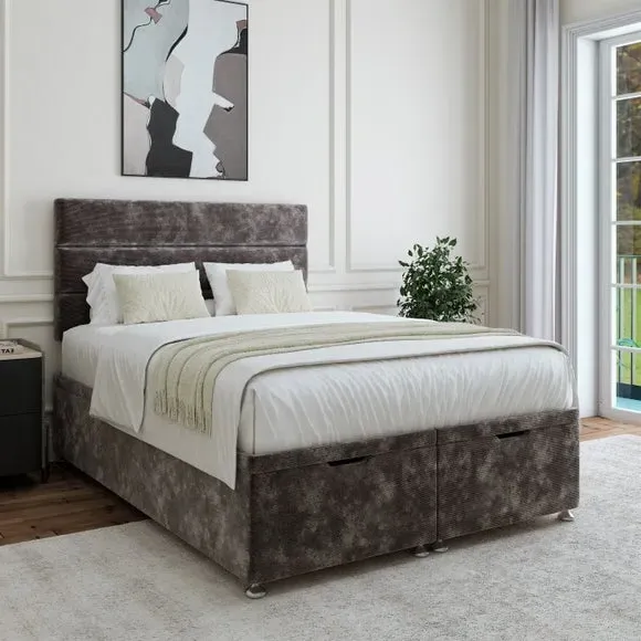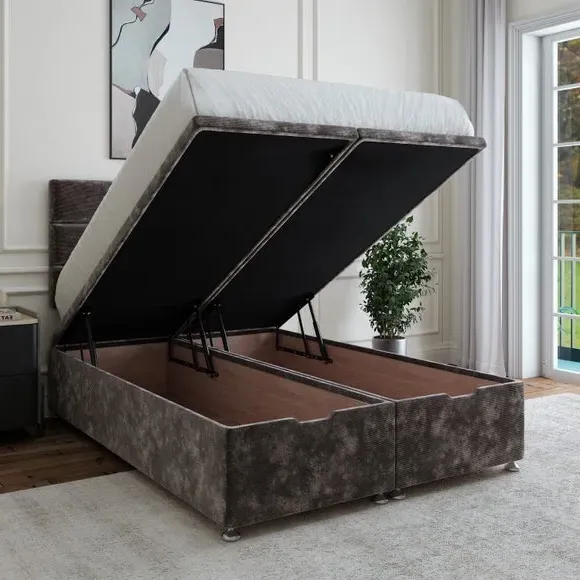 * Smooth opening ottoman* Food end opening* Soft chenille upholstery* Base only, no headboard included Designed with a solid platform top, this ottoman base combines functionality and elegance. Upholstered in premium chenille fabric, it brings a refined touch to your space while providing a practical storage solution. The ottoman design features a spacious hidden compartment, ideal for storing bedding, linens, or other essentials.