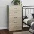 The Barrie chest combines warmth with functionality through its four-drawer configuration and artisan oak finish. Its 16mm high-quality laminated board construction with ABS edging provides durability, while the Norwegian pine accents add natural character. The spacious drawers offer convenient storage for clothing and personal belongings, making organization effortless. W100 x D40 x H90 cm