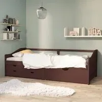 Evania Pine Wood Single Day Bed In Natural, This multifunctional wooden day bed can be used as a sofa during the day, or as a bed at night to offer a quick solution to accommodate overnight guests. This practical sofa bed is definitely an eye-catcher wherever it goes! FEATURES : Material : Solid Pinewood Finish : Natural The day bed is made of solid pinewood, making it sturdy and stable The sturdy slats also offer the needed support and comfort The delivery includes a daybed frame only Sleeping height from the ground : 34cm Can serve as both a guest bed and sofa Suitable mattress size is 90 x 200 cm (W x L) (The mattress is not included) Manual assembly is required Available at an affordable price Images shown are for illustration purpose only DIMENSIONS : Height : 66cm Width : 98cm Depth : 204cm