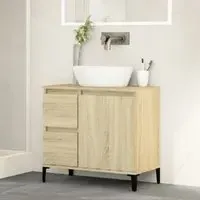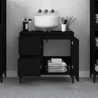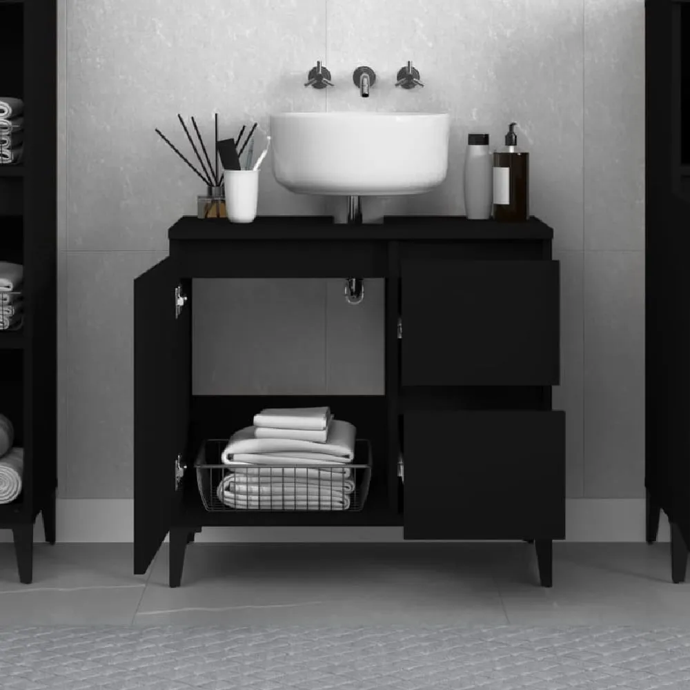 Elevate the aesthetics and functionality of your space with the Furniture in Fashion Prague Wooden Vanity Unit with Oak Legs in Black. Crafted with precision, this sophisticated vanity unit boasts a minimalist design that effortlessly complements contemporary interiors. The combination of its clean Black finish and solid oak legs creates a striking yet timeless appeal, perfect for modern homes. Whether used in a bedroom or dressing area, this piece offers a seamless blend of style and utility. Designed to cater to your everyday needs, the Prague vanity unit features a spacious table top and a well-thought-out storage solution. With smooth, easy-to-open drawers, it provides ample space to organize your essentials neatly. Its sturdy construction ensures durability, while the natural oak legs add a touch of elegance and warmth to the design. Make your morning routine a luxurious experience with this chic and functional furniture piece. Transform your living space with the Furniture in Fashion Prague Wooden Vanity Unit, a perfect blend of elegance and practicality. FEATURES : Material : Wooden Finish : Black ,Oak This bathroom cabinet is a great choice for your bathroom, making it tidy and organised The engineered wood is of exceptional quality with smooth surface and also features strength, stability, and resistance to moisture The bathroom furniture has 2 drawers and 1 compartment with door, offering various storage options and extra space to store items in your bathroom The solid eucalyptus wood feet give the bathroom cupboard a natural and pleasant look while ensuring stability You can install the door and drawers either on the left side or right side based on your own needs Sleek Black finish with natural oak legs for a stylish and modern look Two spacious drawers for organizing makeup, accessories, and other essentials Durable wooden construction with a sturdy frame for long-lasting use Ideal for bedrooms, dressing rooms, or as an accent piec