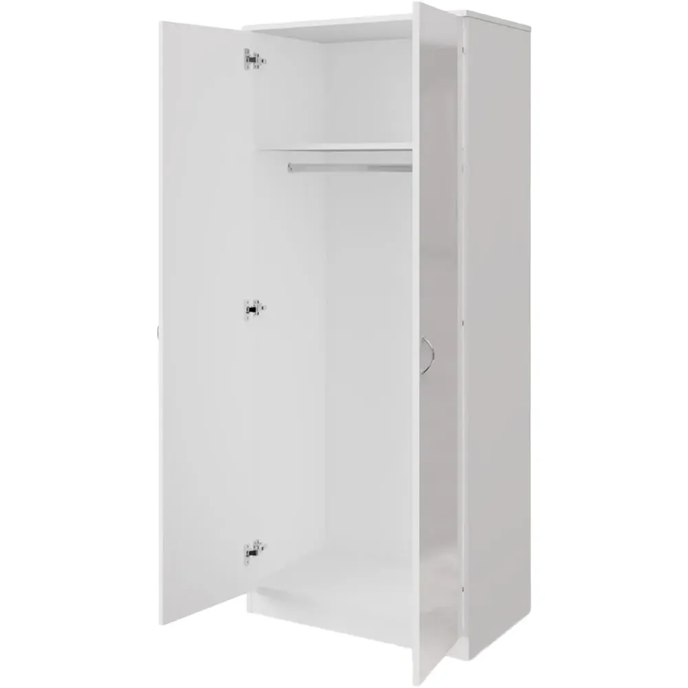 The Chilton wardrobe offers generous storage with its full-width hanging rail and overhead shelf for clothes and accessories. Its gloss grey doors contrast beautifully with the matt grey frame, providing easy access to belongings. The scratch and UV-resistant melamine coating ensures the wardrobe maintains its appearance over time.