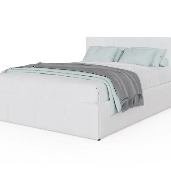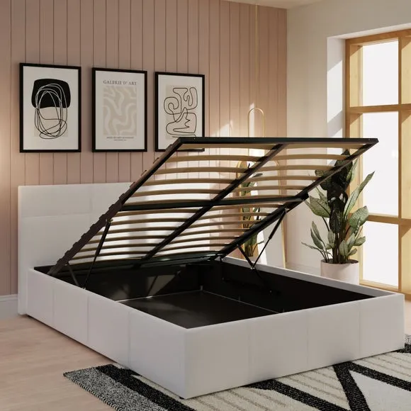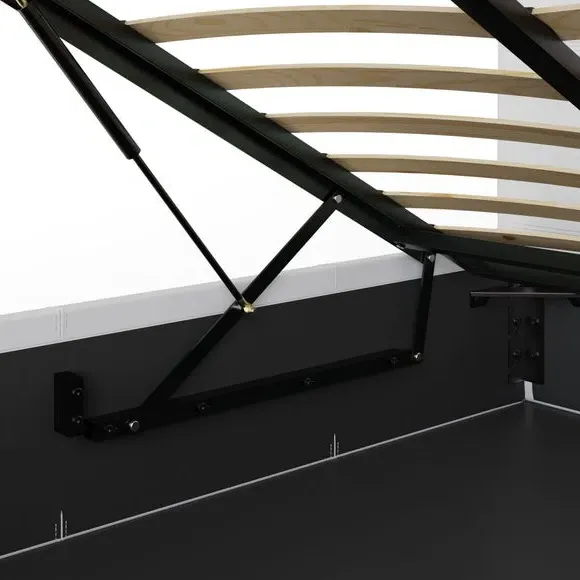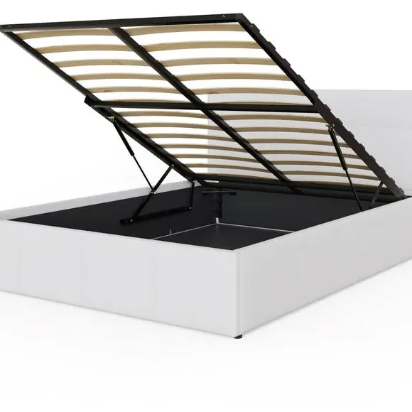 The ottoman bed frame offers ample under-bed storage with its hydraulic end-opening mechanism. Its metal frame construction includes a central cross bar for optimal strength, while the beech sprung slats deliver additional support. The cushioned headboard provides comfort with faux leather upholstery ensuring long-lasting durability.