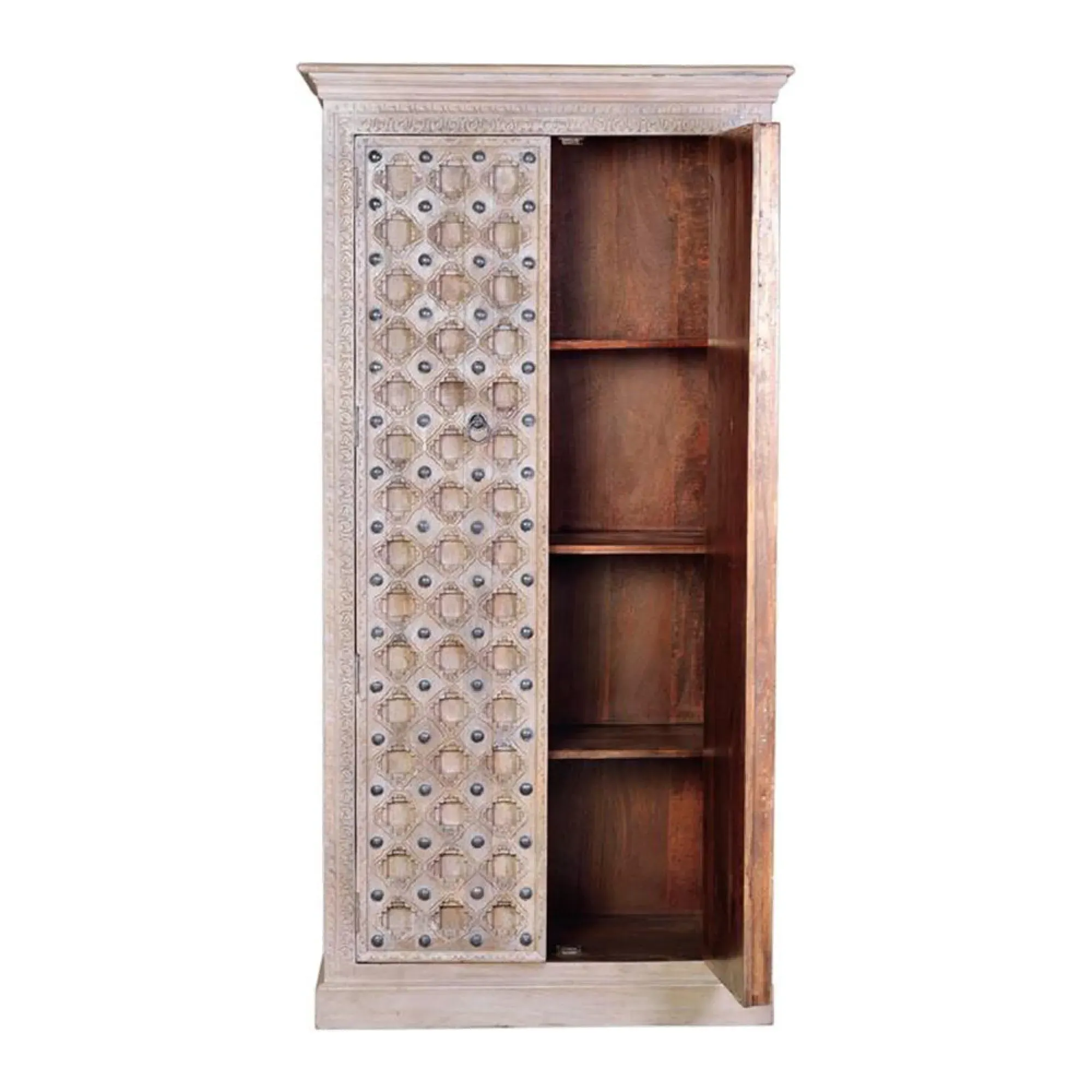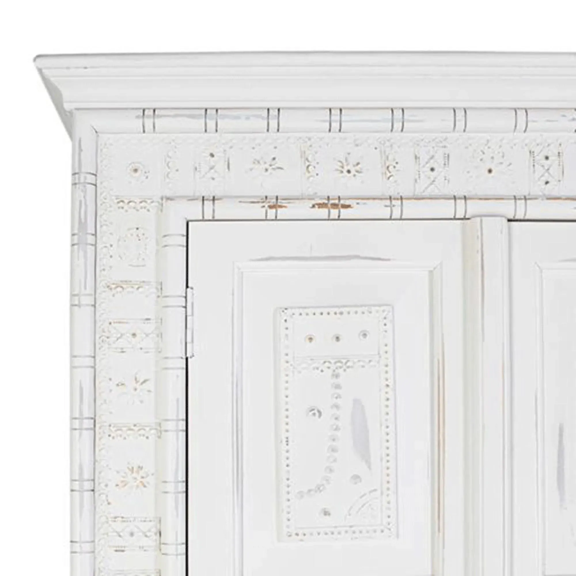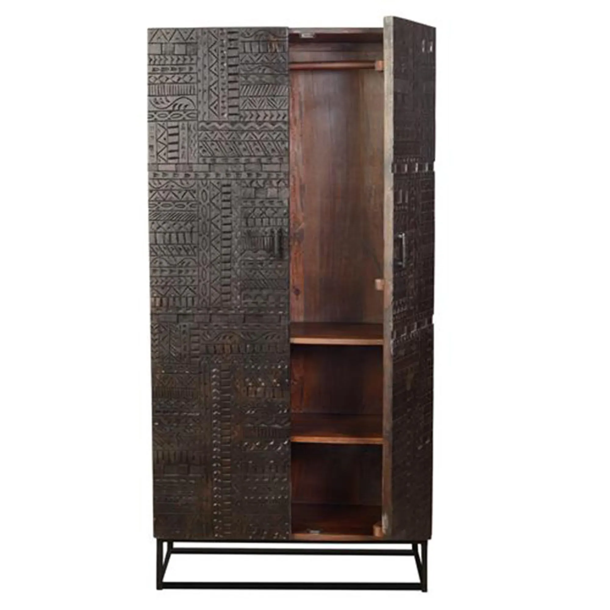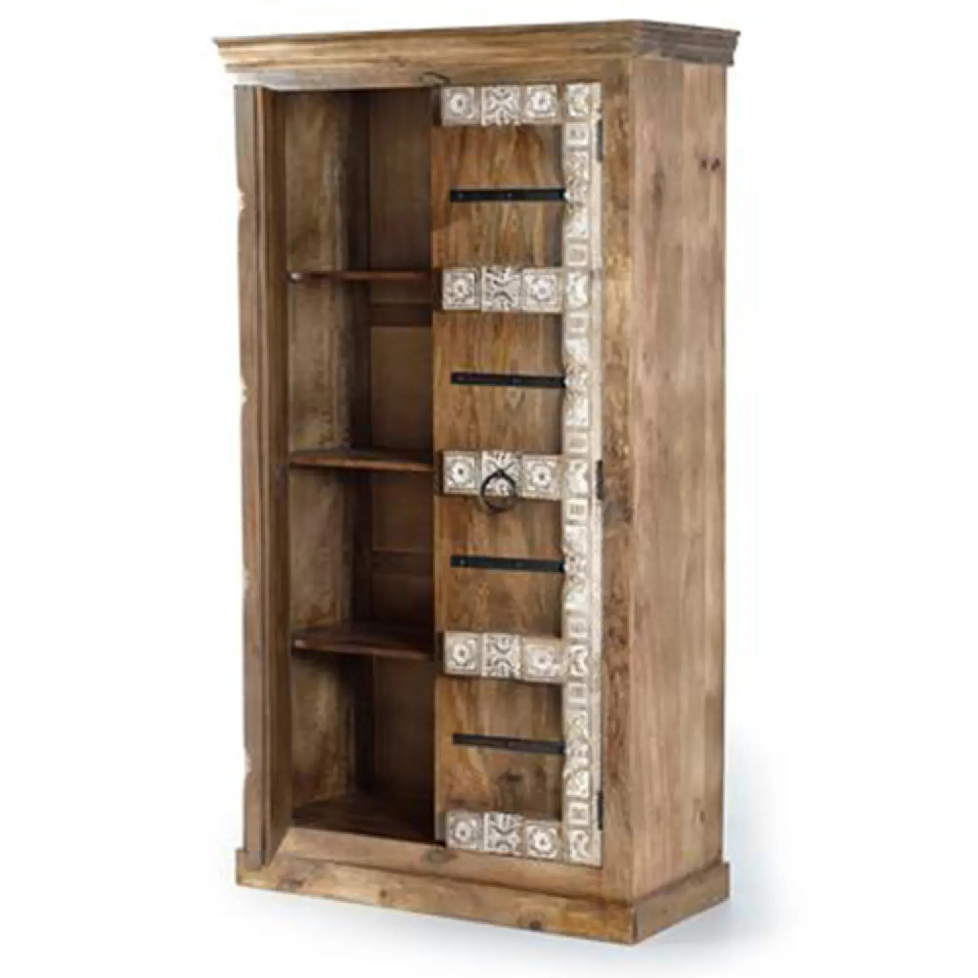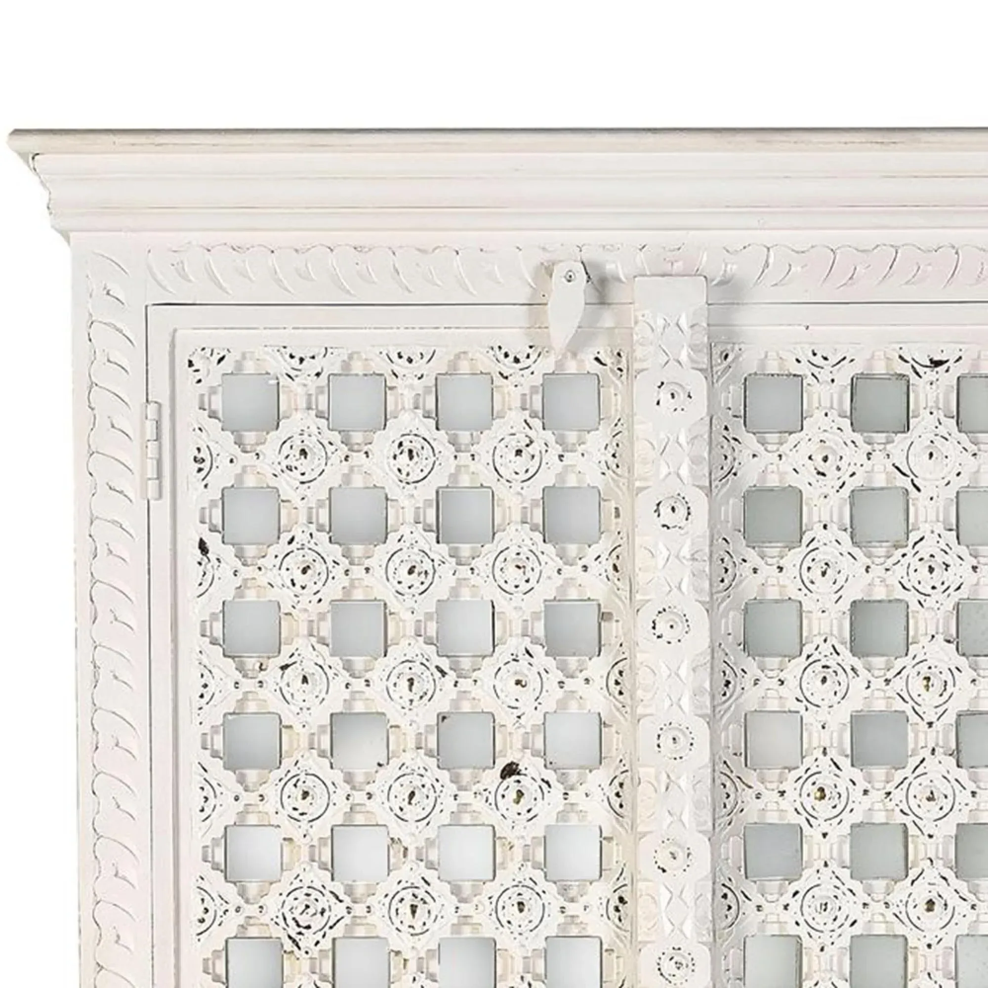 The Madelynn wardrobe features hand-painted mango wood construction with vibrant multicoloured detailing that adds artistic flair. Its two-door design offers practical storage solutions, while the painted finish provides protection and visual interest. The solid wood frame delivers dependable support, and the colourful accents bring character to any space.