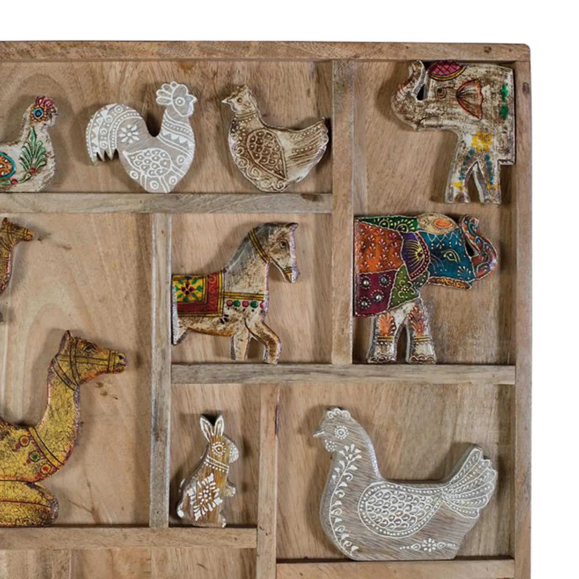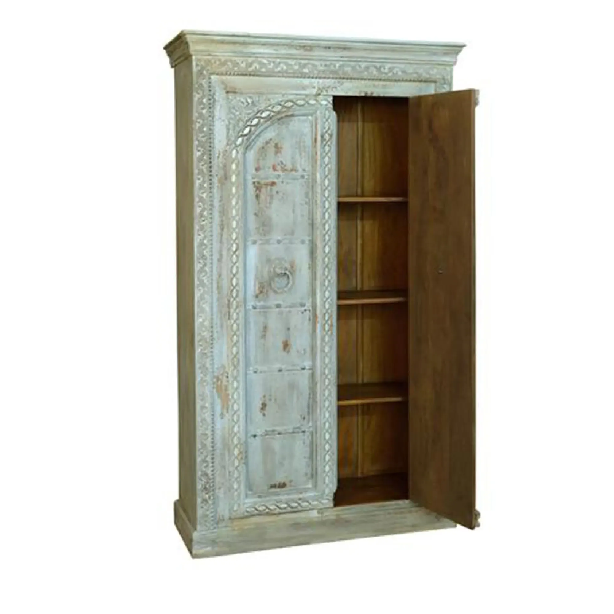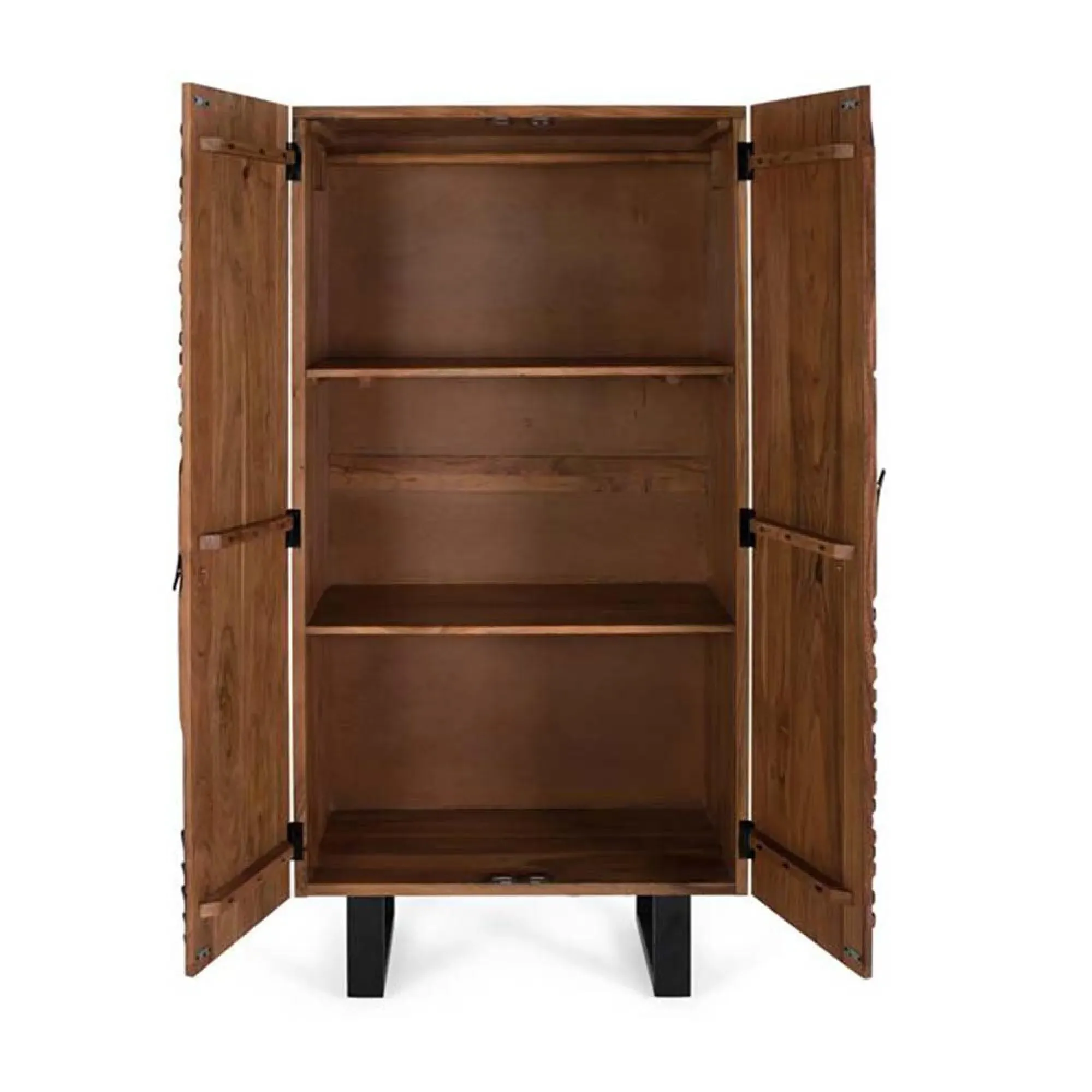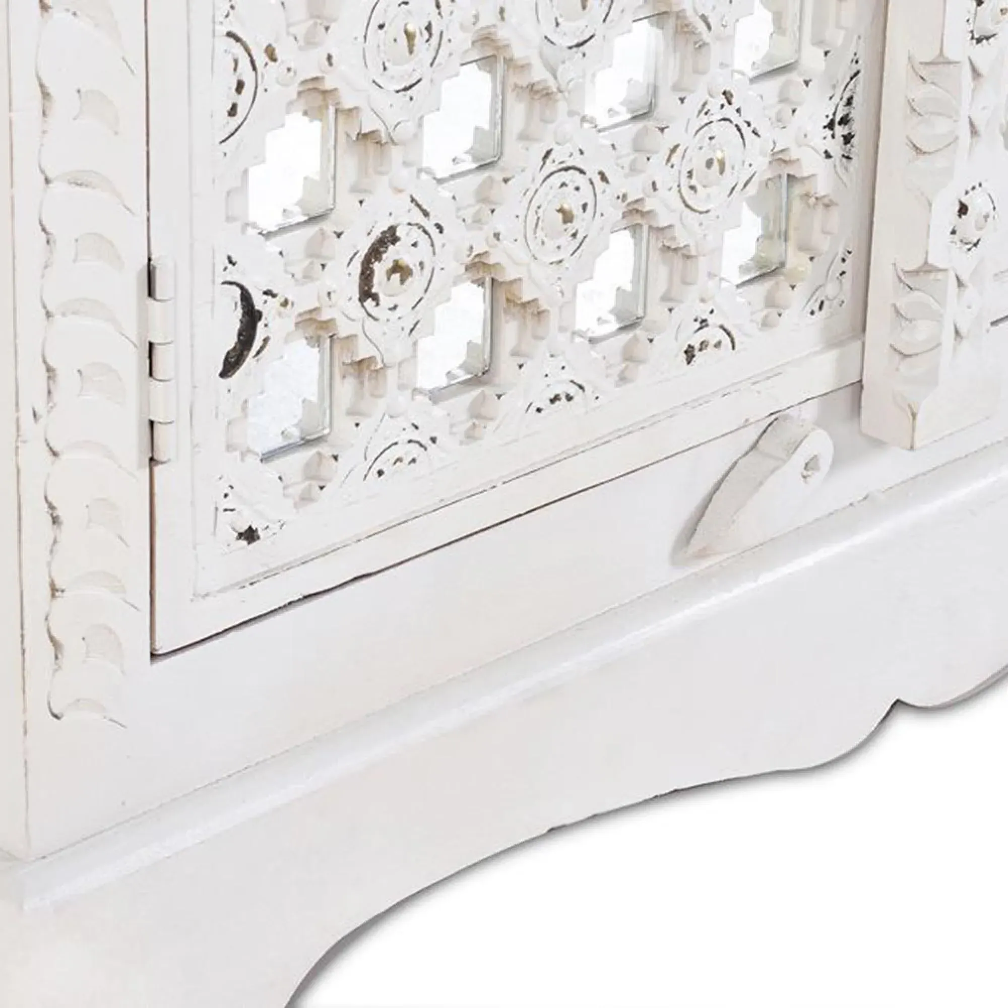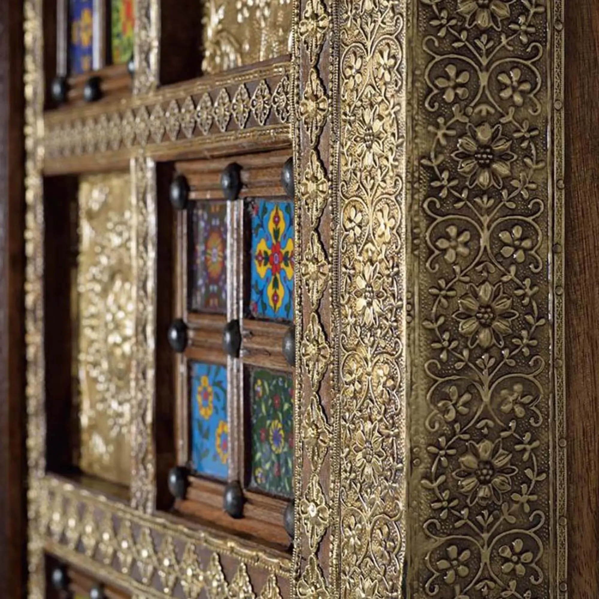 The Madelynn wardrobe features hand-painted mango wood construction with vibrant multicoloured detailing that adds artistic flair. Its two-door design offers practical storage solutions, while the painted finish provides protection and visual interest. The solid wood frame delivers dependable support, and the colourful accents bring character to any space.