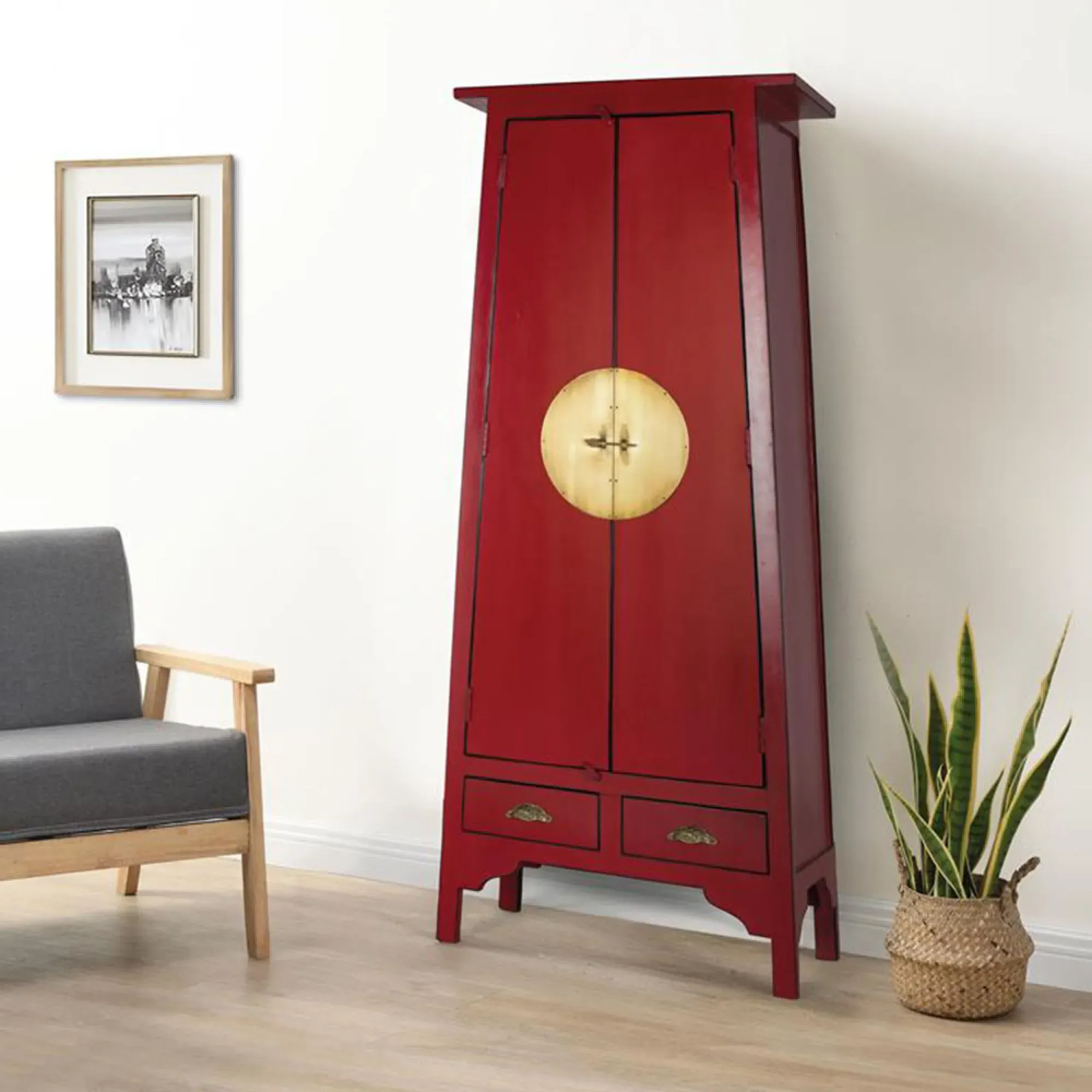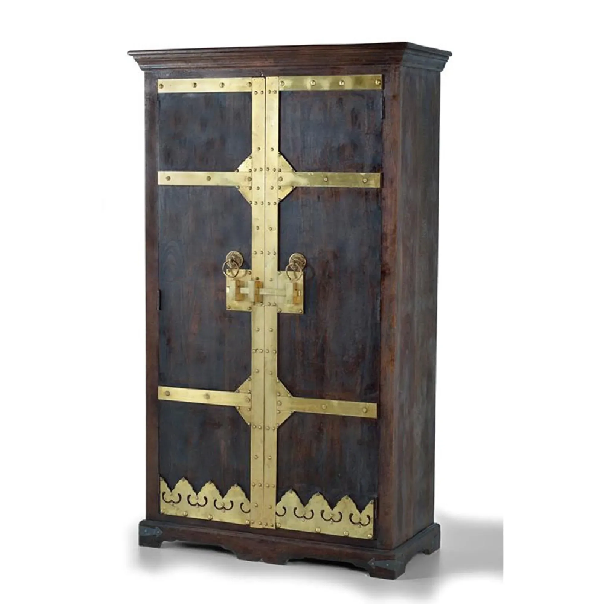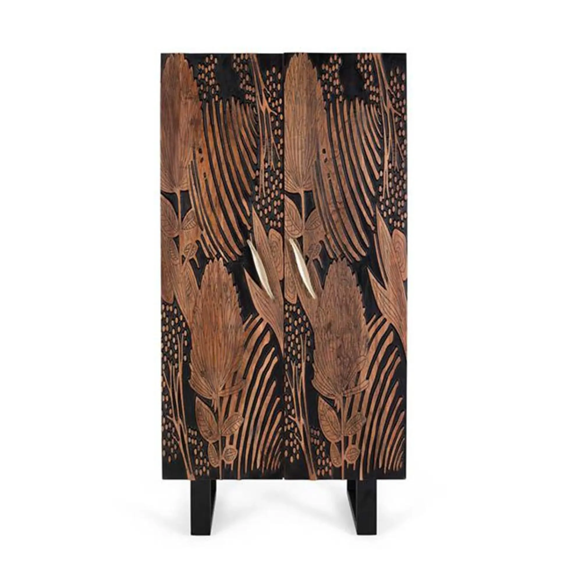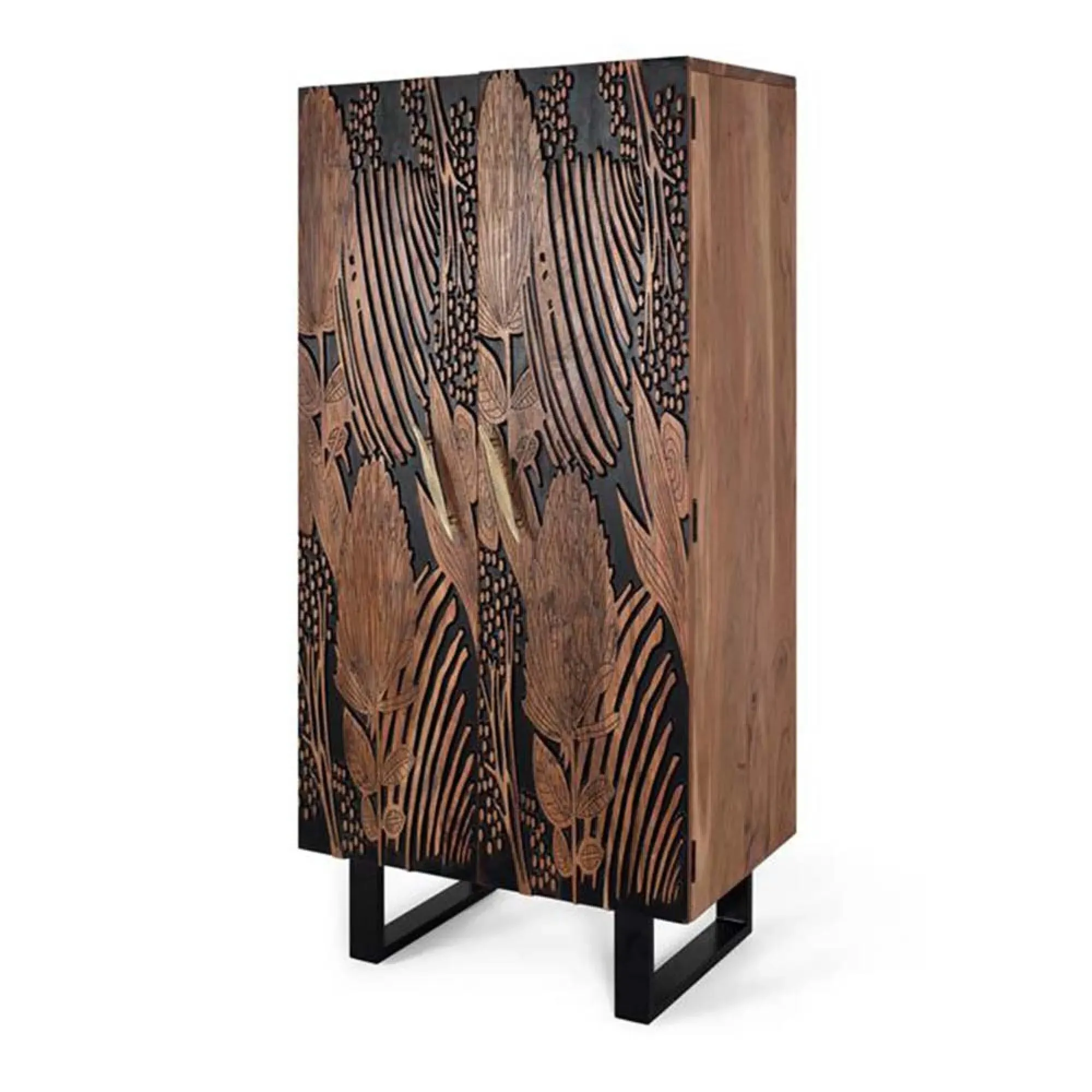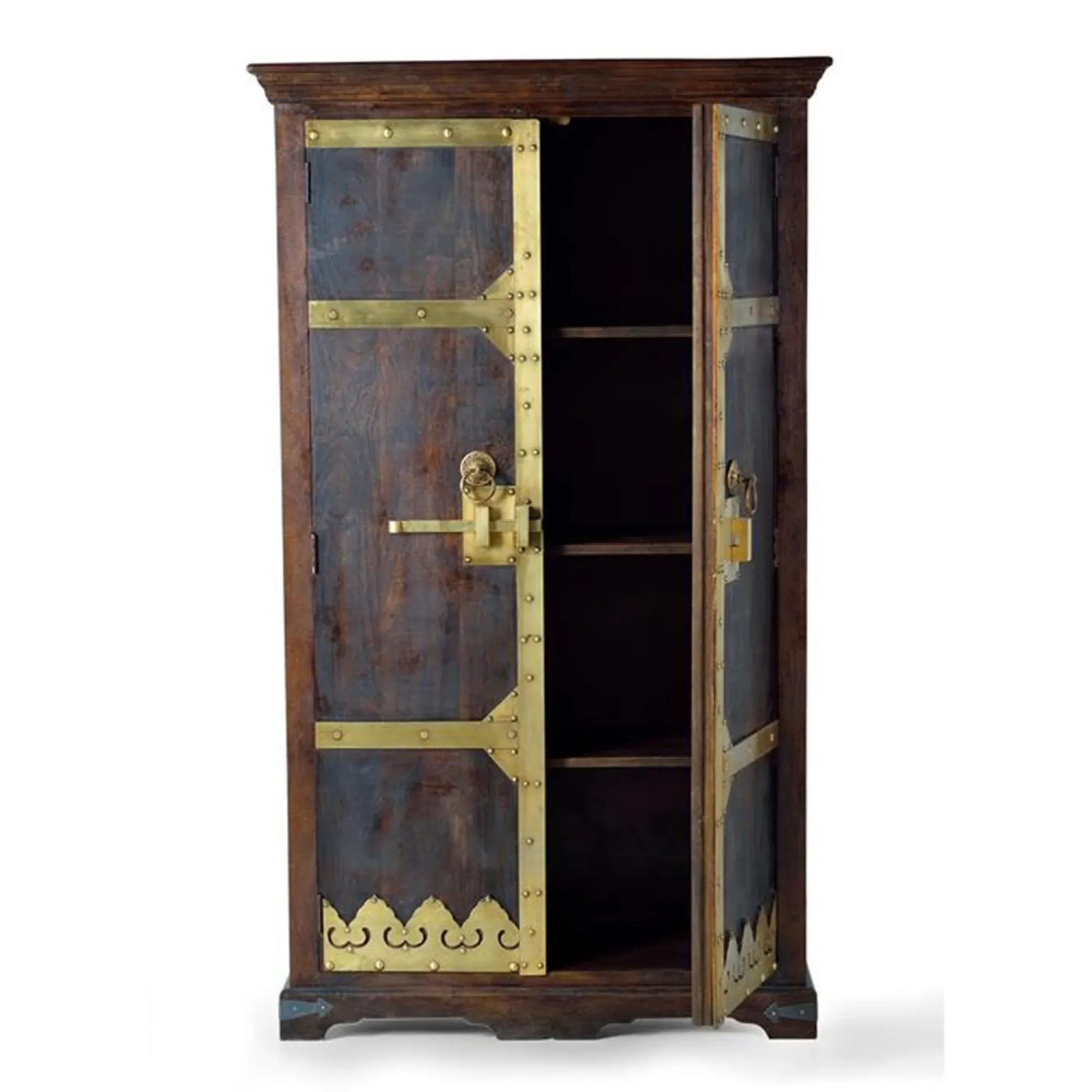 The Madelynn wardrobe features hand-painted mango wood construction with vibrant multicoloured detailing that adds artistic flair. Its two-door design offers practical storage solutions, while the painted finish provides protection and visual interest. The solid wood frame delivers dependable support, and the colourful accents bring character to any space.