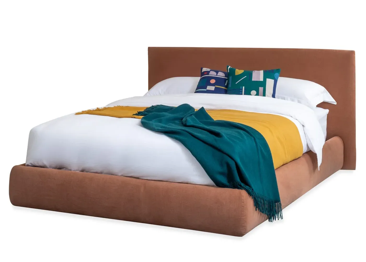The Alba bed is a striking, contemporary design that features a slim upholstered headboard and neatly tailored bed base. Aided by hidden pistons, the mattress area can easily be tilted upwards to reveal a handy storage compartment below. Perfect for hiding away extra bedding and pillows, this makes it great for bedrooms short on space. At the same time, Alba's oversized headboard gives the illusion of a much larger bed, meaning it will still make a statement in large spaces as well. Available in a wide range of fabrics, the bed base covers can be removed for ease of maintenance.