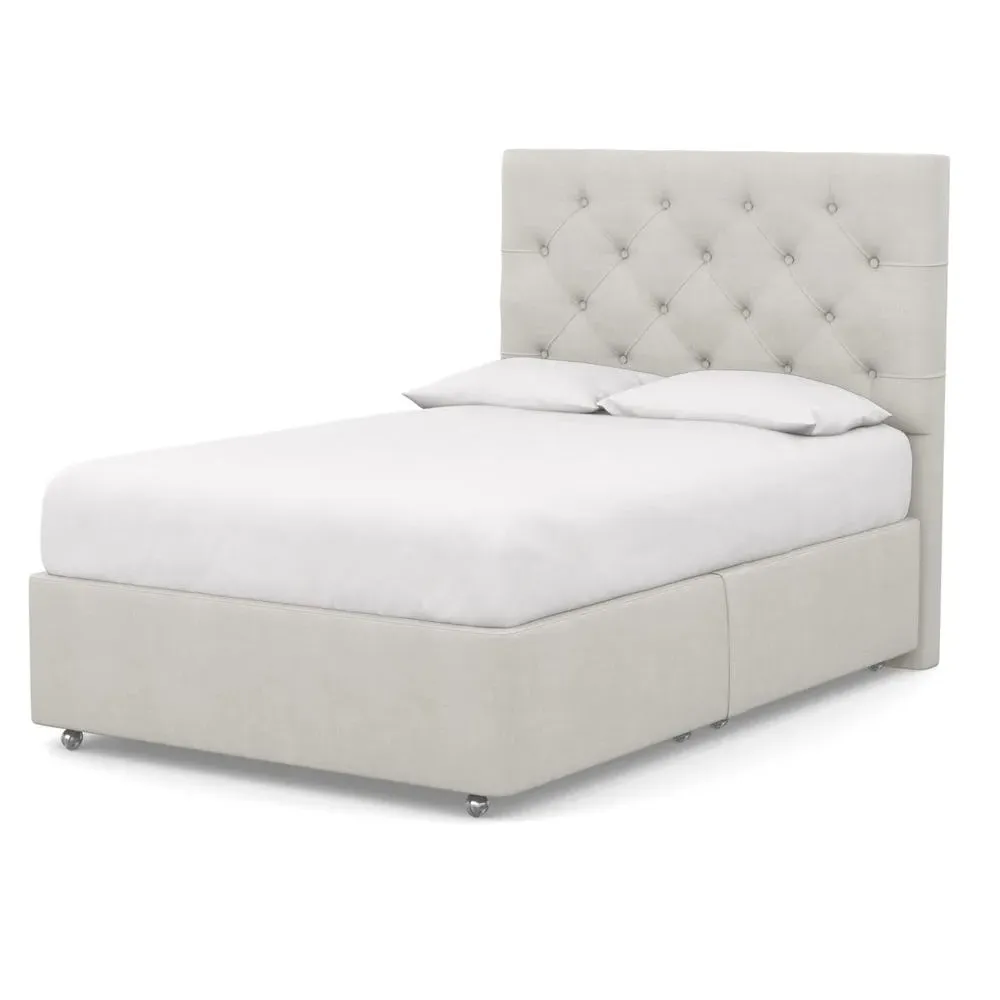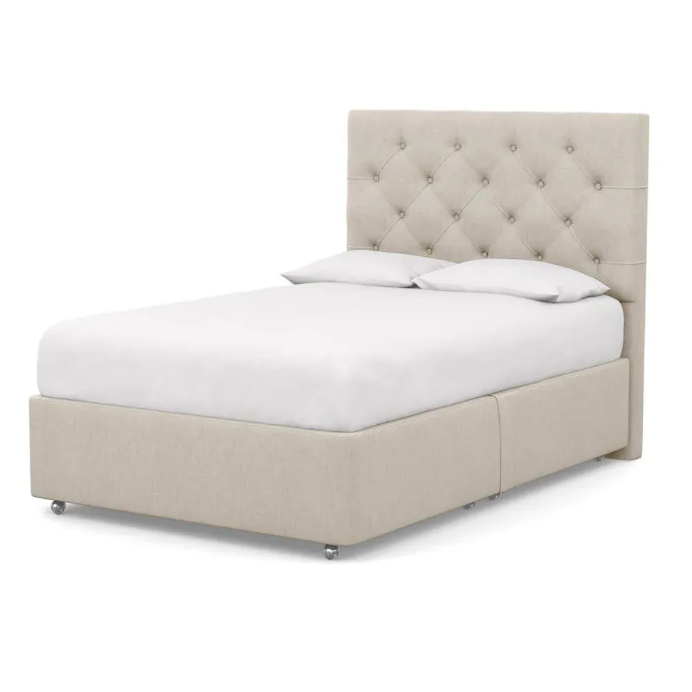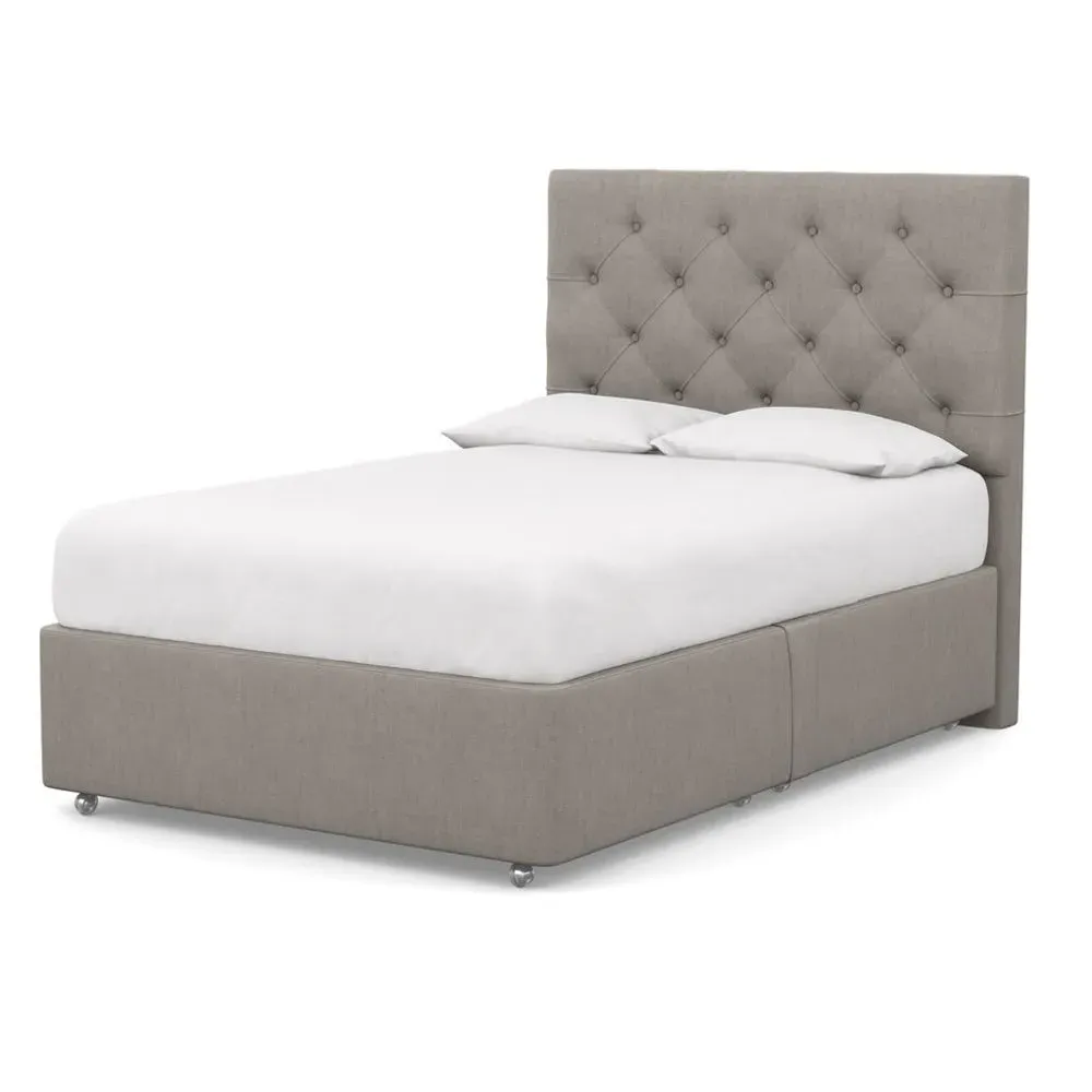 The divan base provides superior comfort with its sprung construction, crafted from FSC certified timber and filled with natural fibres. Its fully upholstered cotton finish adds softness, while the supportive base prolongs mattress life and ensures breathable sleep. The design pairs with various headboards and comes with a 10 year guarantee.