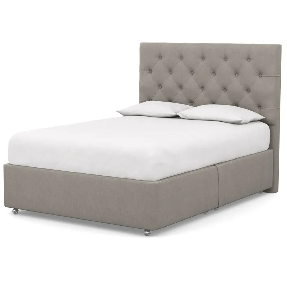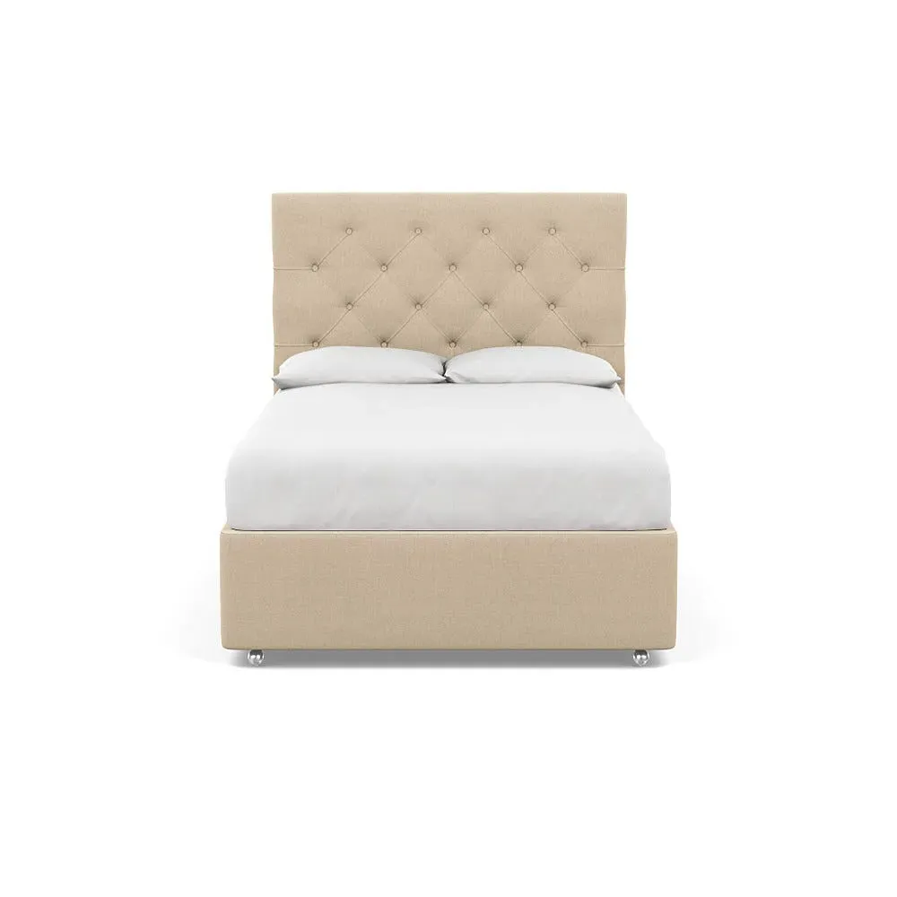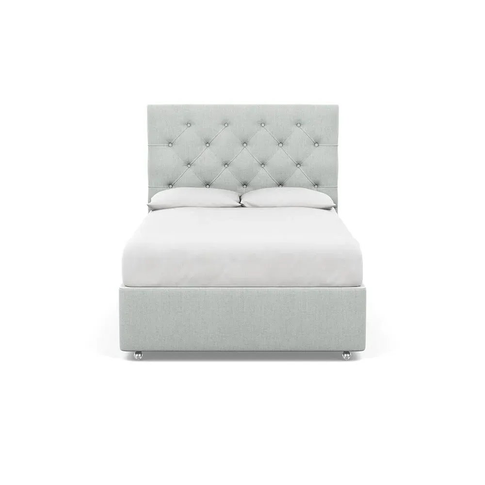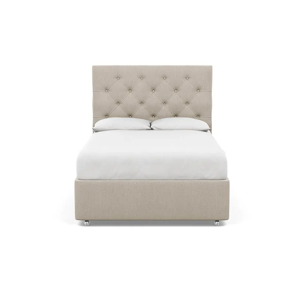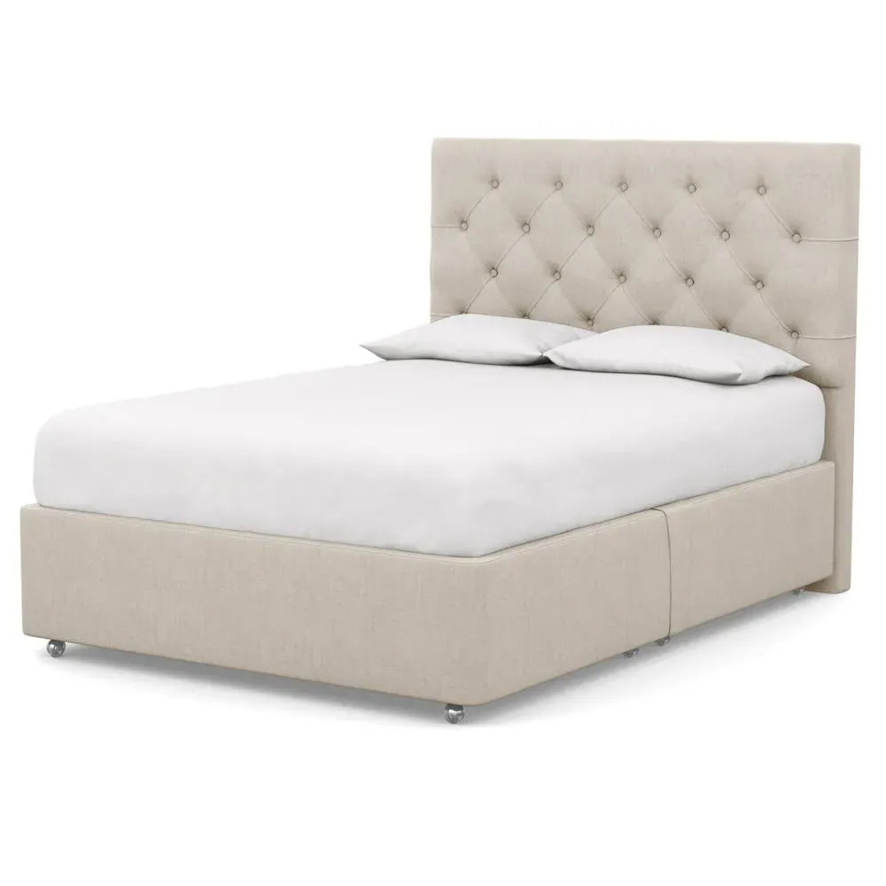 The headboard combines traditional button-tufted design with deep cushioned comfort for reading support. Its plump foam filling provides extra comfort, while the FSC certified timber frame ensures lasting durability. The brushed cotton upholstery adds softness and contemporary appeal, and the handcrafted construction provides quality that comes with a 10-year guarantee.