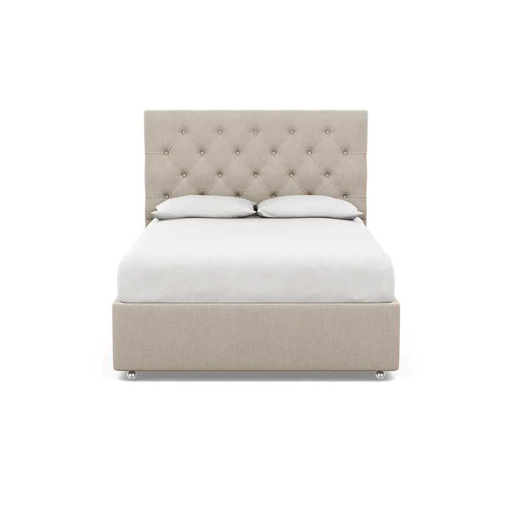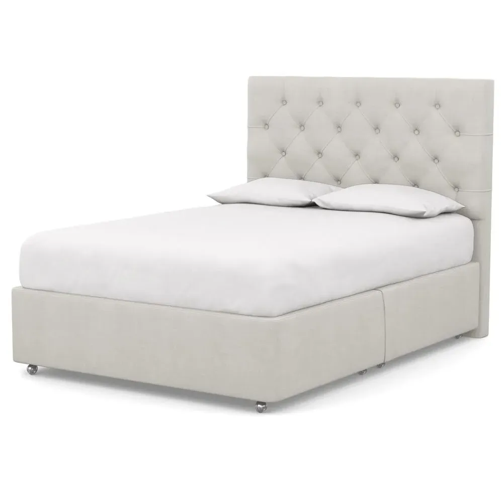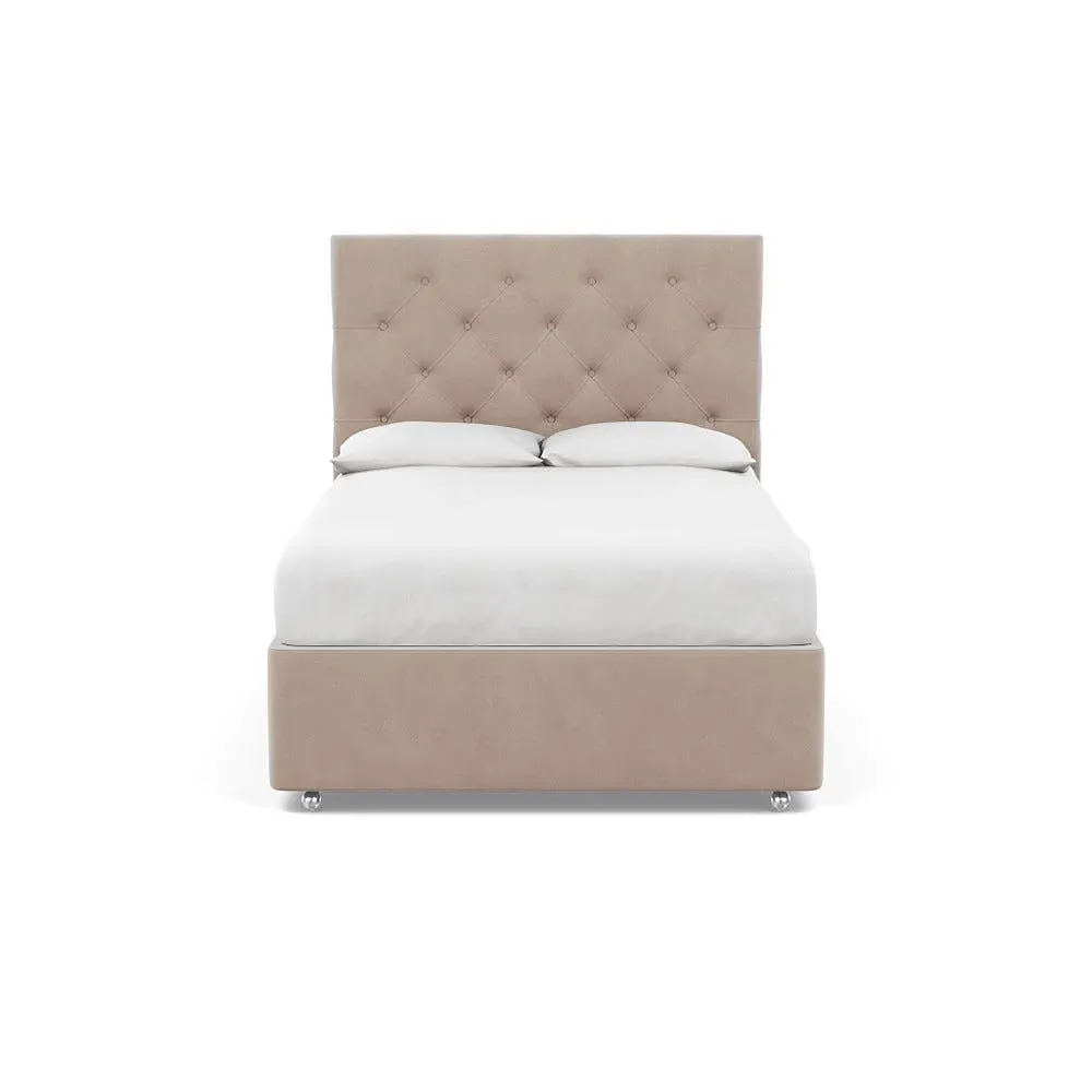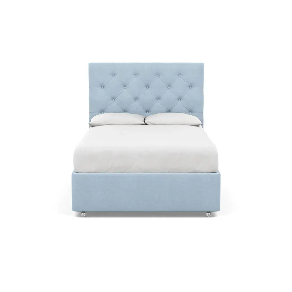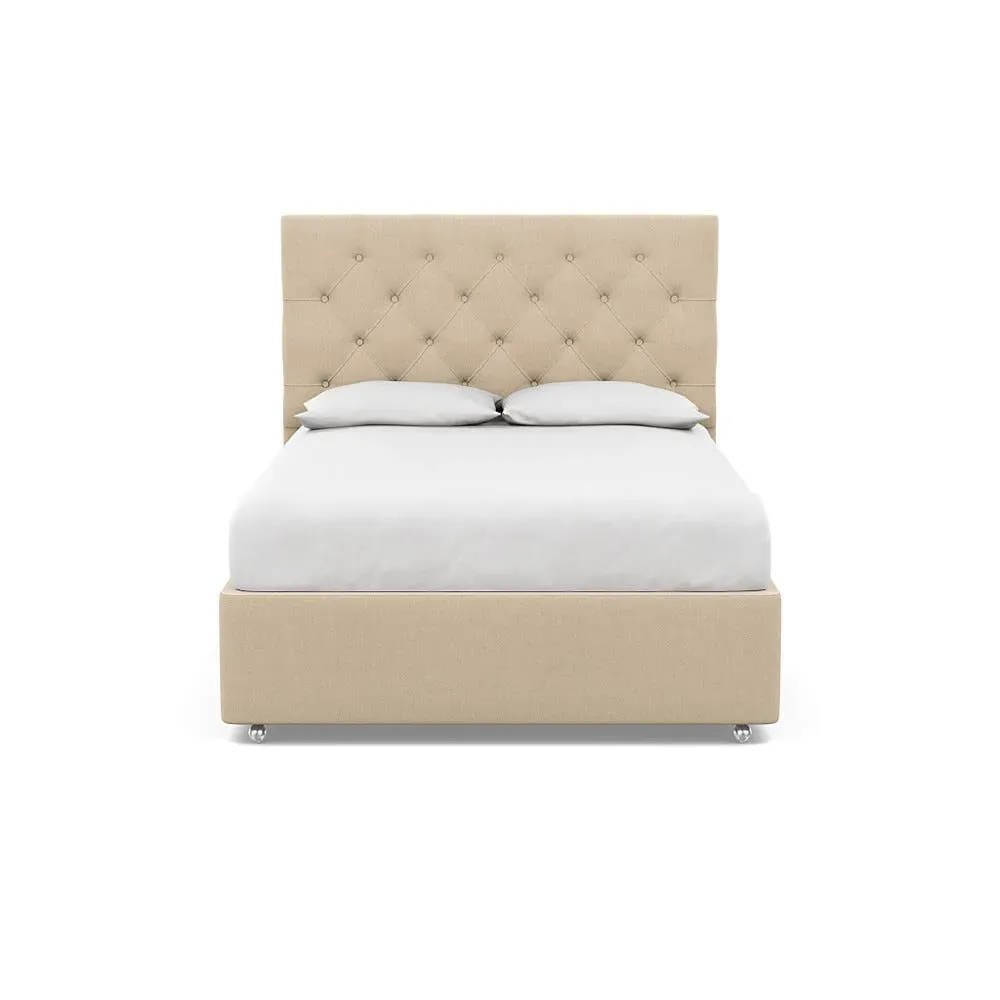 The headboard combines traditional button-tufted design with deep cushioned comfort for reading support. Its plump foam filling provides extra comfort, while the FSC certified timber frame ensures lasting durability. The brushed cotton upholstery adds softness and contemporary appeal, and the handcrafted construction provides quality that comes with a 10-year guarantee.