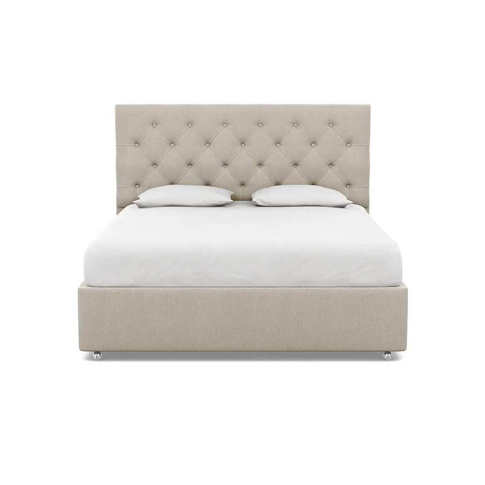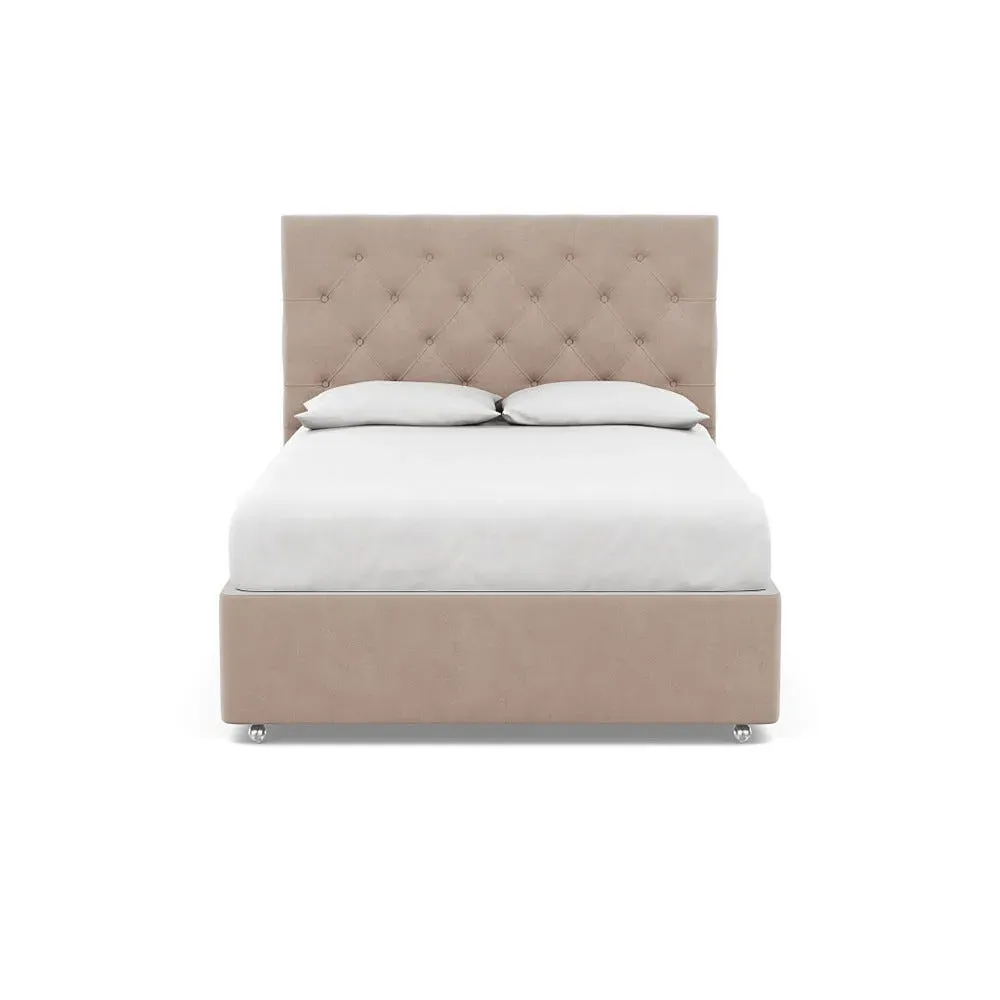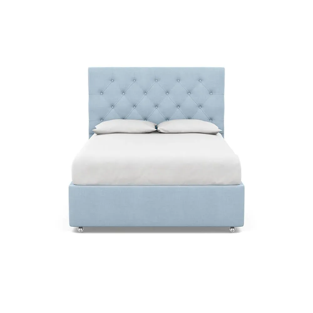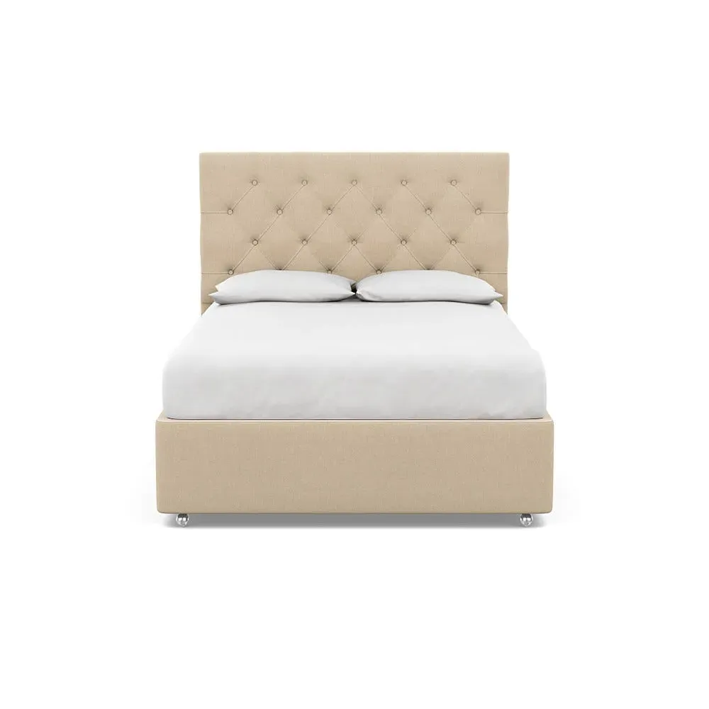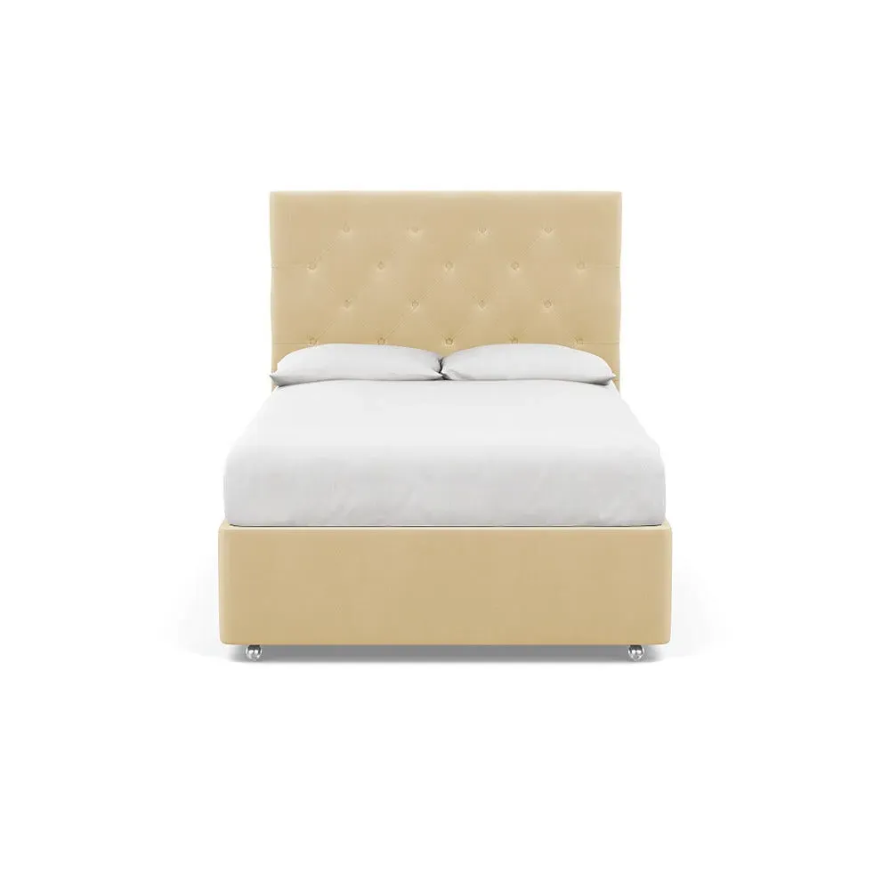 The headboard combines traditional button-tufted design with deep cushioned comfort for reading support. Its plump foam filling provides extra comfort, while the FSC certified timber frame ensures lasting durability. The brushed cotton upholstery adds softness and contemporary appeal, and the handcrafted construction provides quality that comes with a 10-year guarantee.