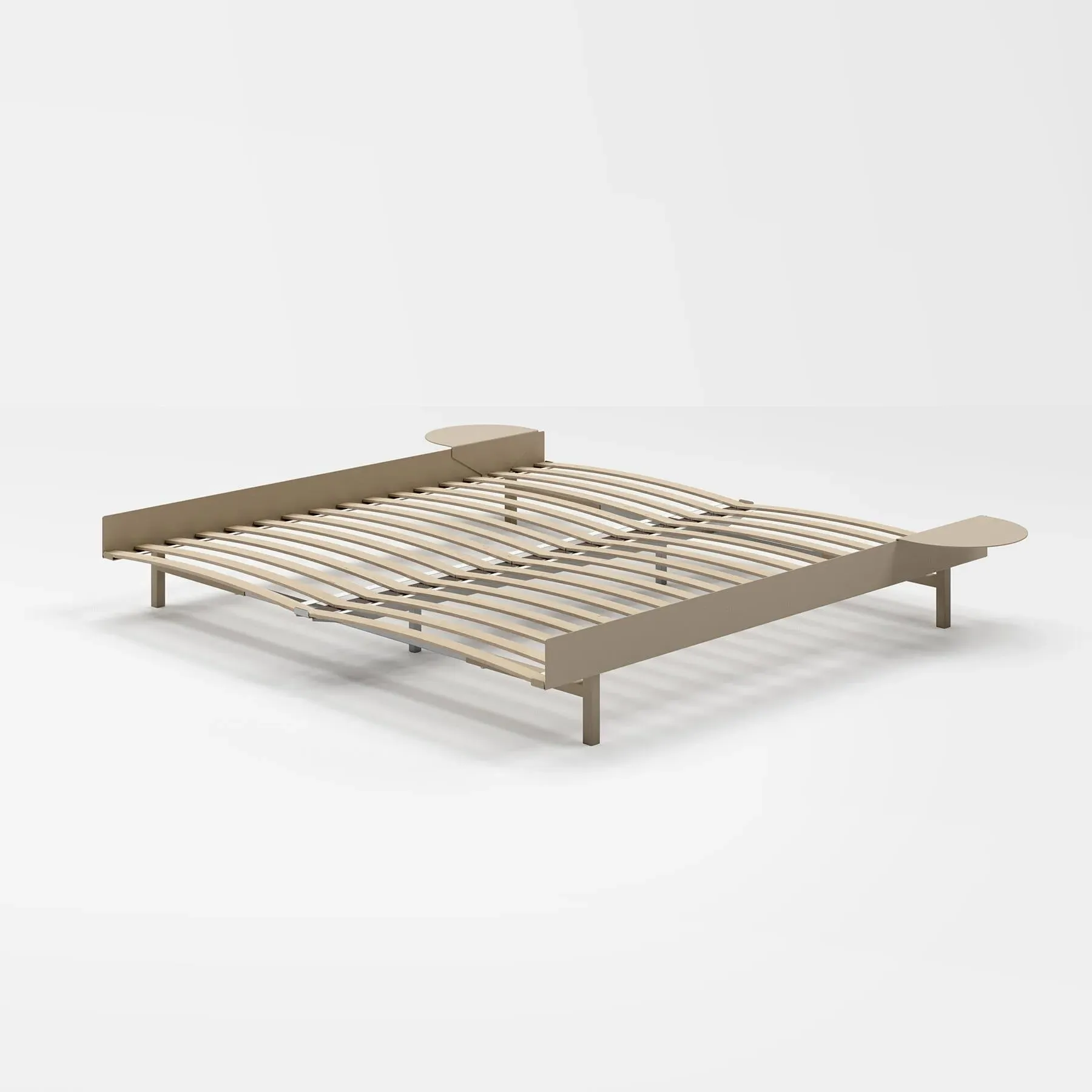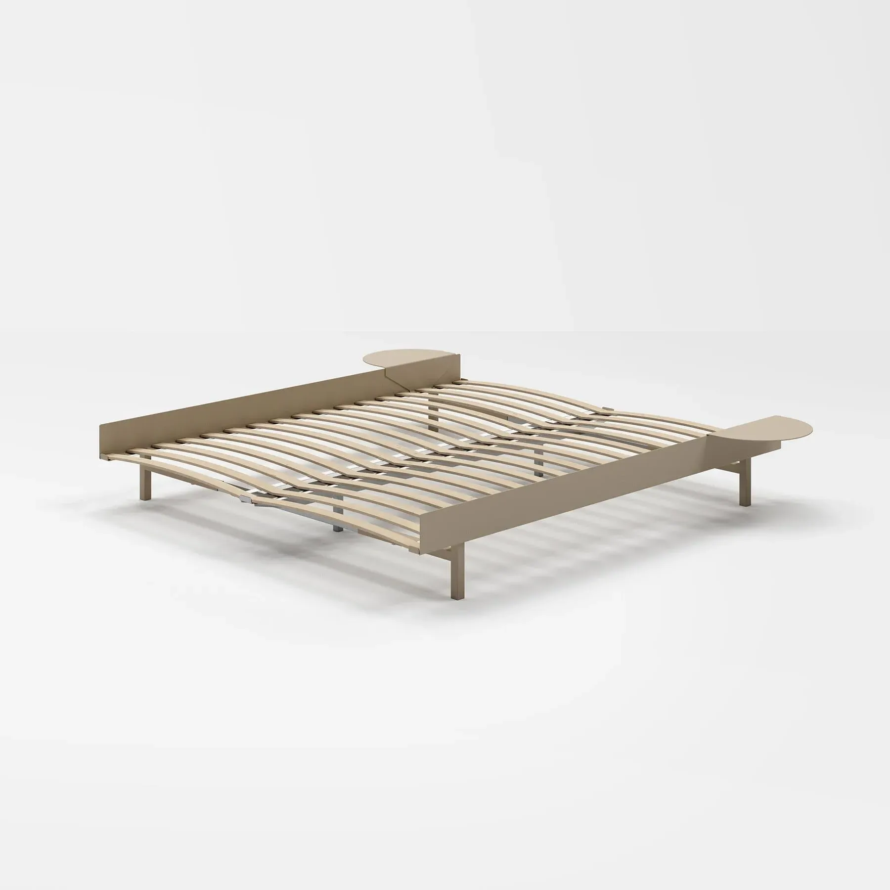 Certified with the EU Ecolabel, MOEBE’s Bed prioritises healthy indoor environments in your bedroom by using materials and paints that meet stringent standards. The bed comes in four stylish colours; black, sand, pine green, or dusty rose, and offers optional bedside table choices. The powder-coated steel frame combined with wooden beech slats ensures durability and visual appeal. Additionally, the optional half-moon-shaped bedside table adds extra functionality, providing space for bedside essentials and seamlessly complementing any bedroom style or decor. The MOEBE Bed, with its minimalist expression, offers a timeless and adaptable solution for your bedroom needs. Designed in 2021, MOEBE''s Bed is a versatile and fully customisable bed that can effortlessly transform from a single 90cm bed to a 140, 160, or 180cm wide bed (extender and upgraded slats sold separately). The flexibility of this bed allows it to adapt to various room sizes and needs, making it suitable for both children''s rooms and master bedrooms. The bed is designed to fit any length mattress, and if the need arises for a larger bed, a simple expander set is all that''s required. Please talk with one of our sales team who will be willing to help you. Note: Mattress and pillows not included.
