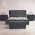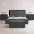 The Brooklyn bedroom furniture set combines comfort with coordinated design, featuring a double bed with deep padded headboard and footboard upholstered in grey linen fabric. Its solid wooden frame provides durability, while the sprung slatted base offers mattress support for restful sleep. The set includes two matching bedside tables and a blanket box, all upholstered in the same linen material for a cohesive bedroom aesthetic.