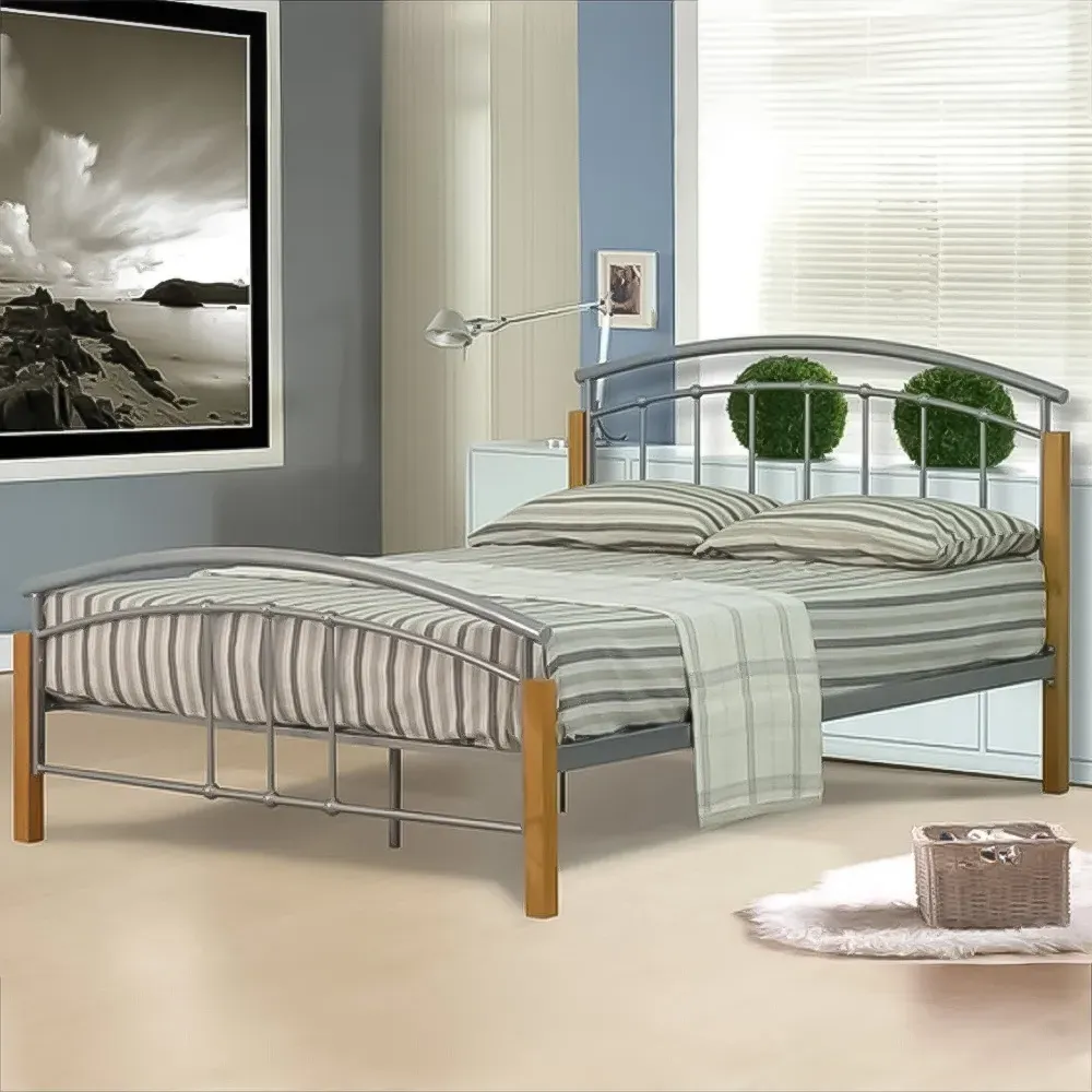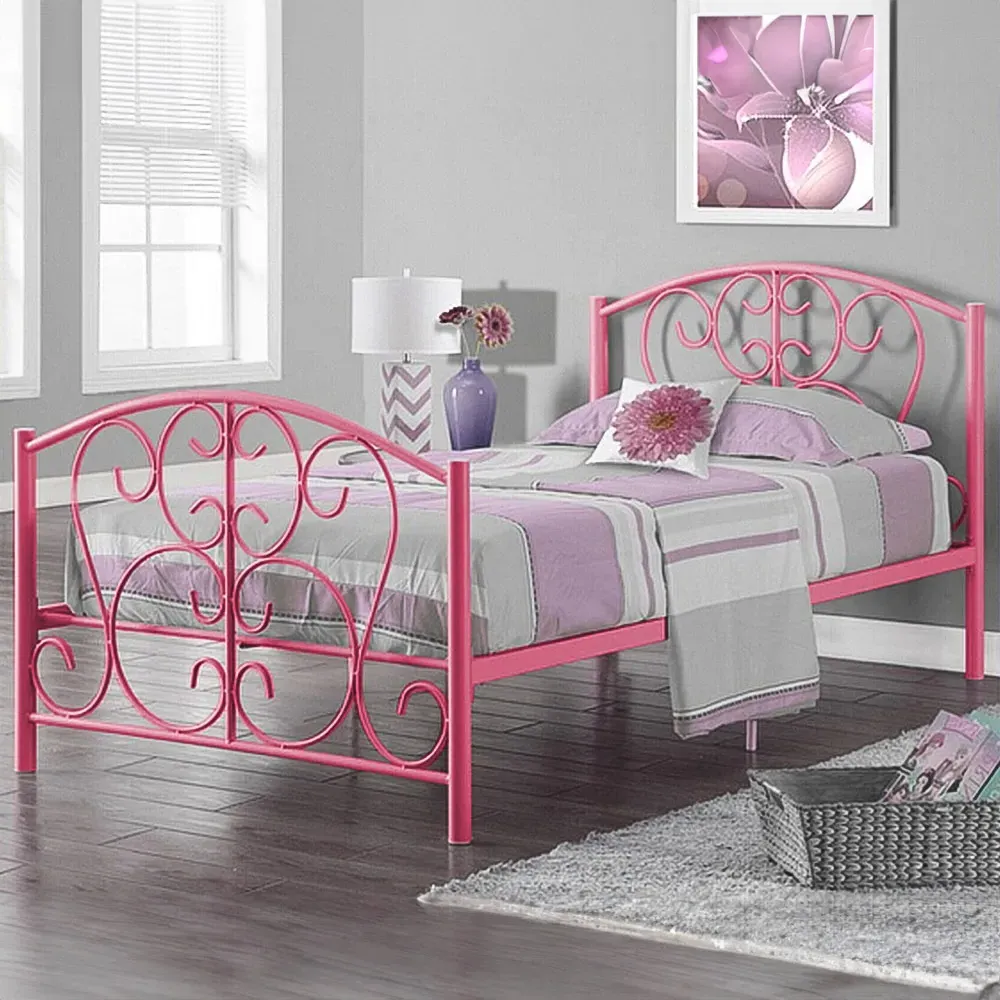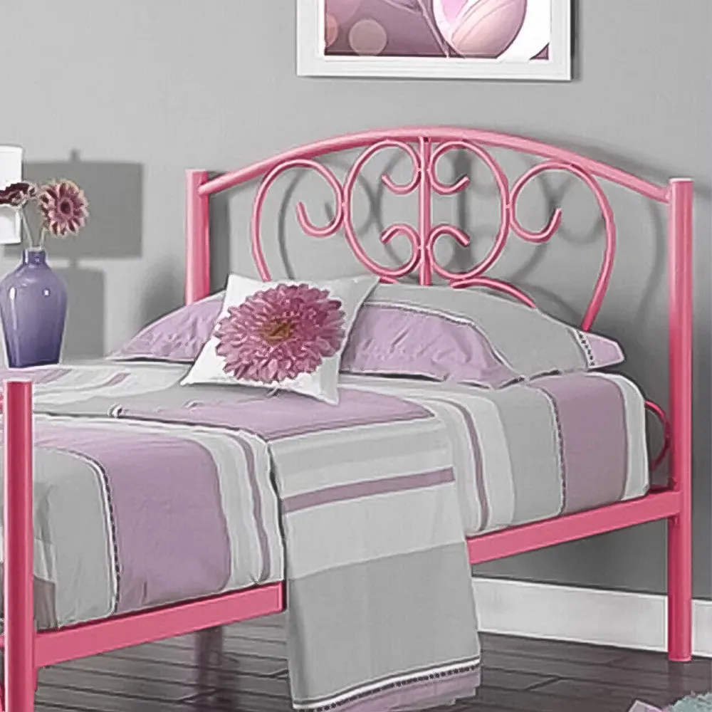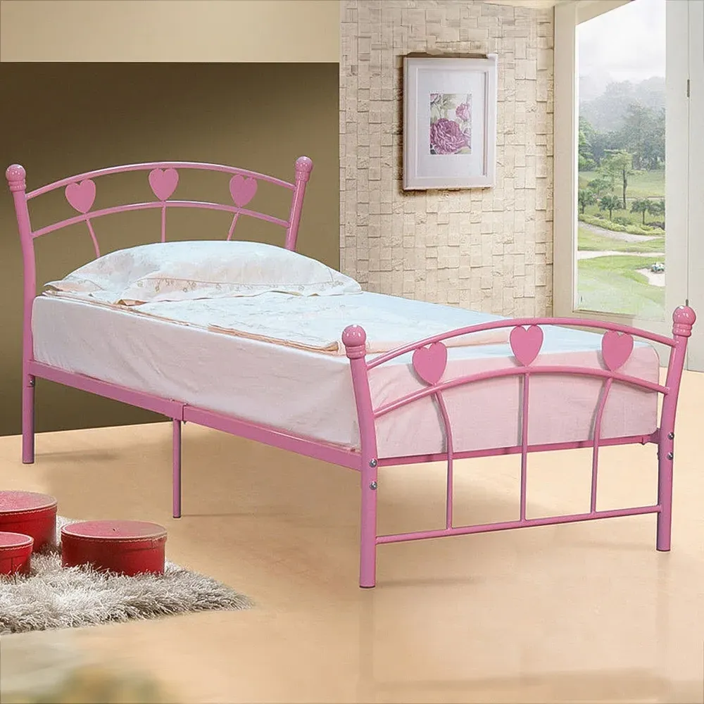 Upgrade your sleep haven with this Brooklyn Single Pink Metal Bed Frame. This metal bed frame features soft sloping details in the headboard and foot end making it a suitable option for any contemporary bedroom. Sturdy and durable, the frame is supported with a sprung slatted base for extra comfort and stability. Also, the bed is perfect for use with a standard single-size mattress (sold separately).