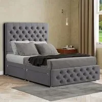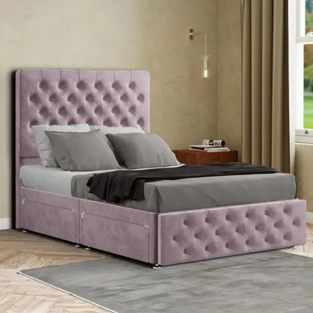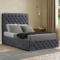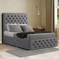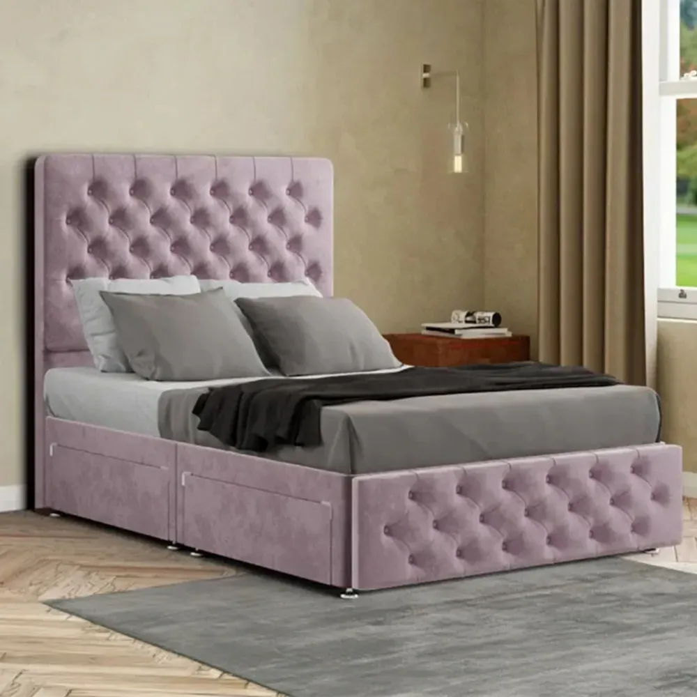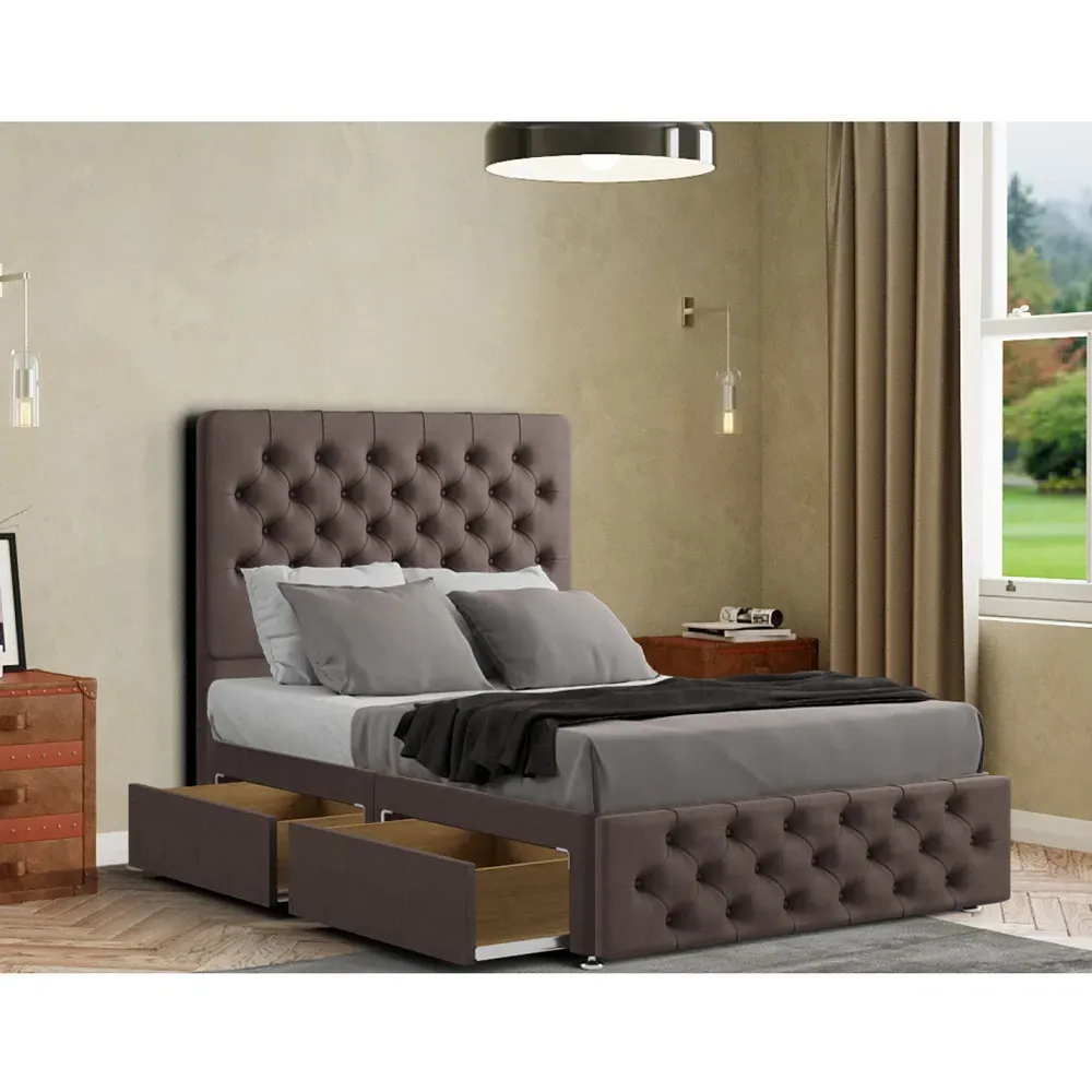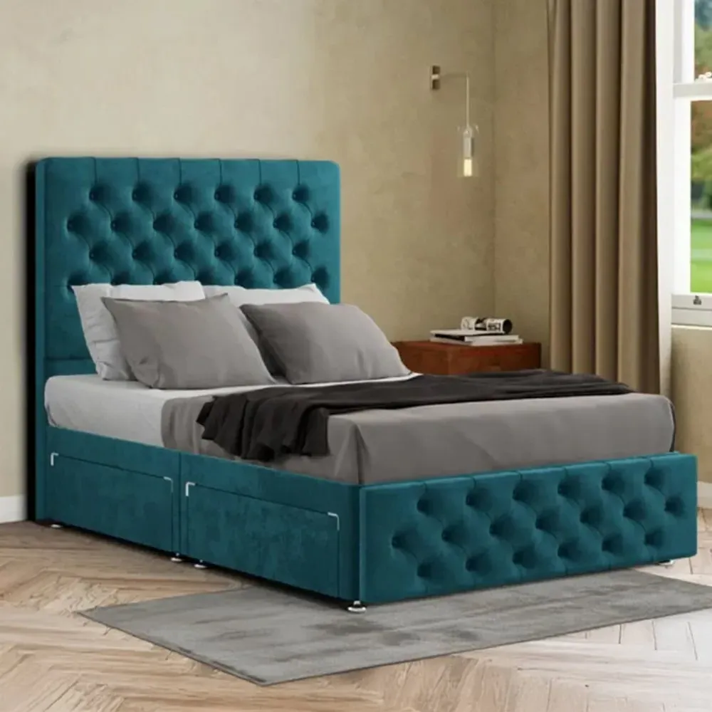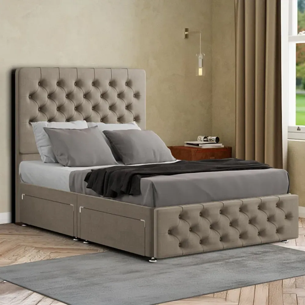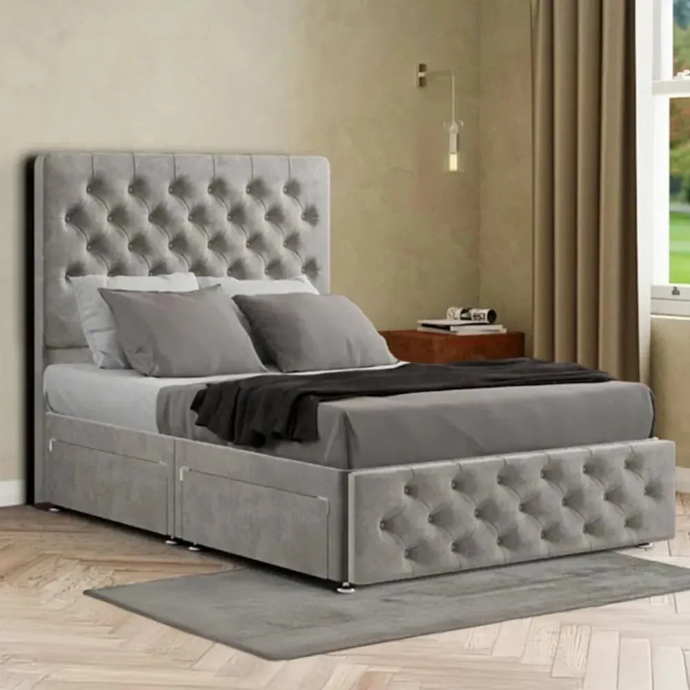 Introducing the Mary Chesterfield Divan Bed with 2 Drawers and a Floor Standing Headboard. Made in the UK with precision and care, the Mary Chesterfield Divan Bed is the epitome of luxury and style for your bedroom. Elevate Your Comfort: This elegant divan base comes equipped with two convenient drawers, providing ample storage space for your essentials while maintaining a sleek, clutter-free appearance. Attention to Detail: The exquisite Chesterfield design is adorned with matching buttons, creating a timeless and sophisticated look that complements any decor. Mattress Not Included: The Mary Chesterfield Divan Bed is ready to pair with your preferred mattress, allowing you to personalize your sleep experience. Premium Quality: Crafted with the utmost care and using high-quality materials, this divan bed is built to last, providing you with years of restful nights and stylish elegance. Upgrade your bedroom with the Mary Chesterfield Divan Bed and experience the epitome of comfort, style, and functionality. Make your bedroom a haven of luxury - order yours today.