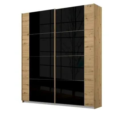 Rauch Artemis 181cm 2 Door Sliding Wardrobe - Alpine White and Basalt Glass - 57G7/ AG369, available to buy online or at Choice Furniture Superstore UK on stockist sale price. Get volume - discount with fast and Free Delivery.