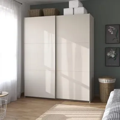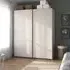 The Aurelio wardrobe combines functionality with its spacious 2-door sliding design, featuring a striking Alpine White and Artisan Oak finish. The sliding doors provide easy access while saving space, making it suitable for various room layouts. Its sturdy construction ensures reliable storage for clothing and accessories, while the dual-tone finish adds visual interest to any bedroom.