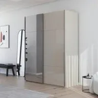 The Contido wardrobe combines practical storage with its 2 door sliding mirror design, featuring extra compartments for enhanced organization. Its 181cm width provides ample hanging and storage space, while the sliding doors save floor space in your room. The mirrored surfaces add functionality and visual depth, and the Alpine White finish offers a clean, bright appearance.