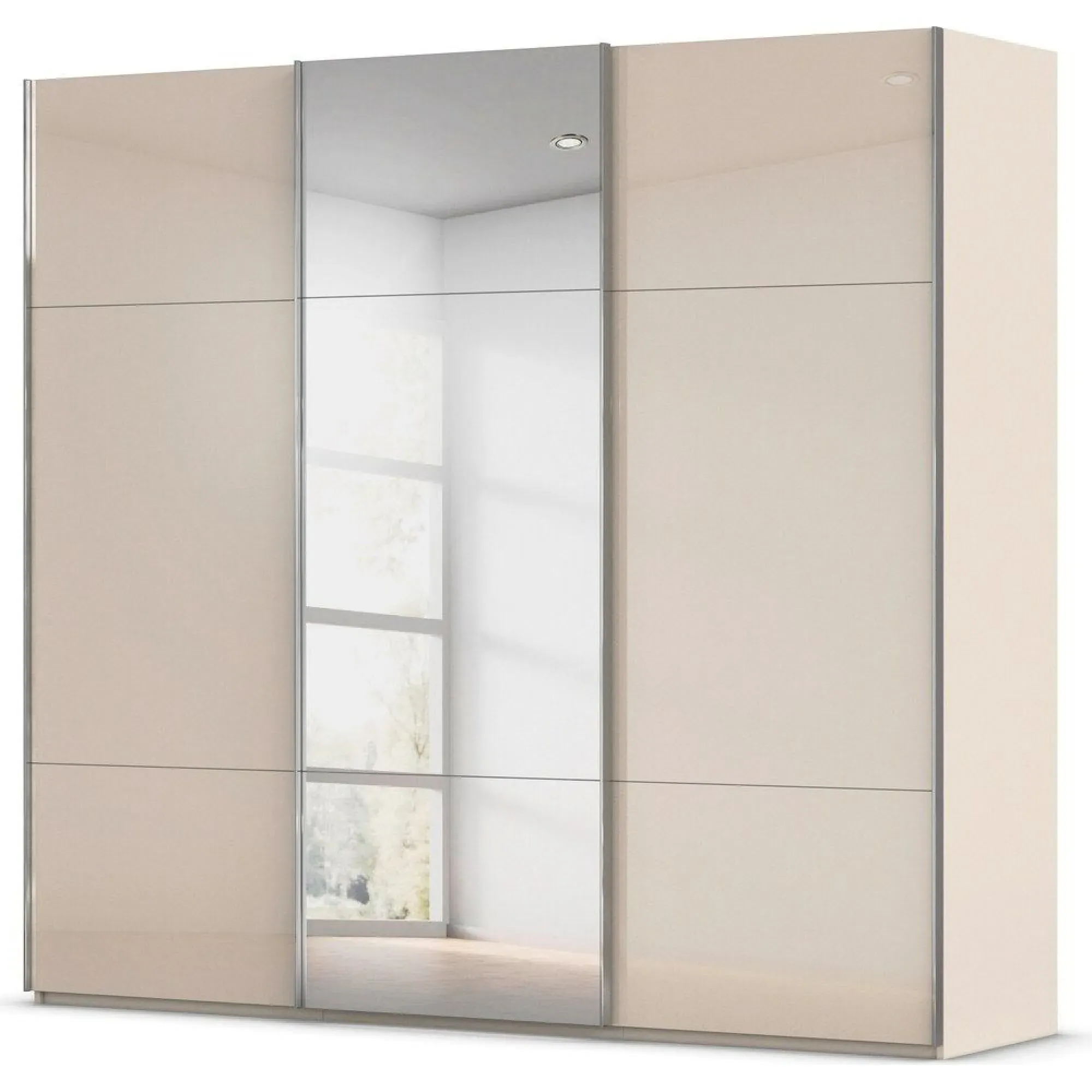 Rauch Contido 242cm 3 Door Sliding Mirror Wardrobe with Extras - Alpine White - 0KW3/ A814A, available to buy online or at Choice Furniture Superstore UK on stockist sale price. Get volume - discount with fast and Free Delivery.
