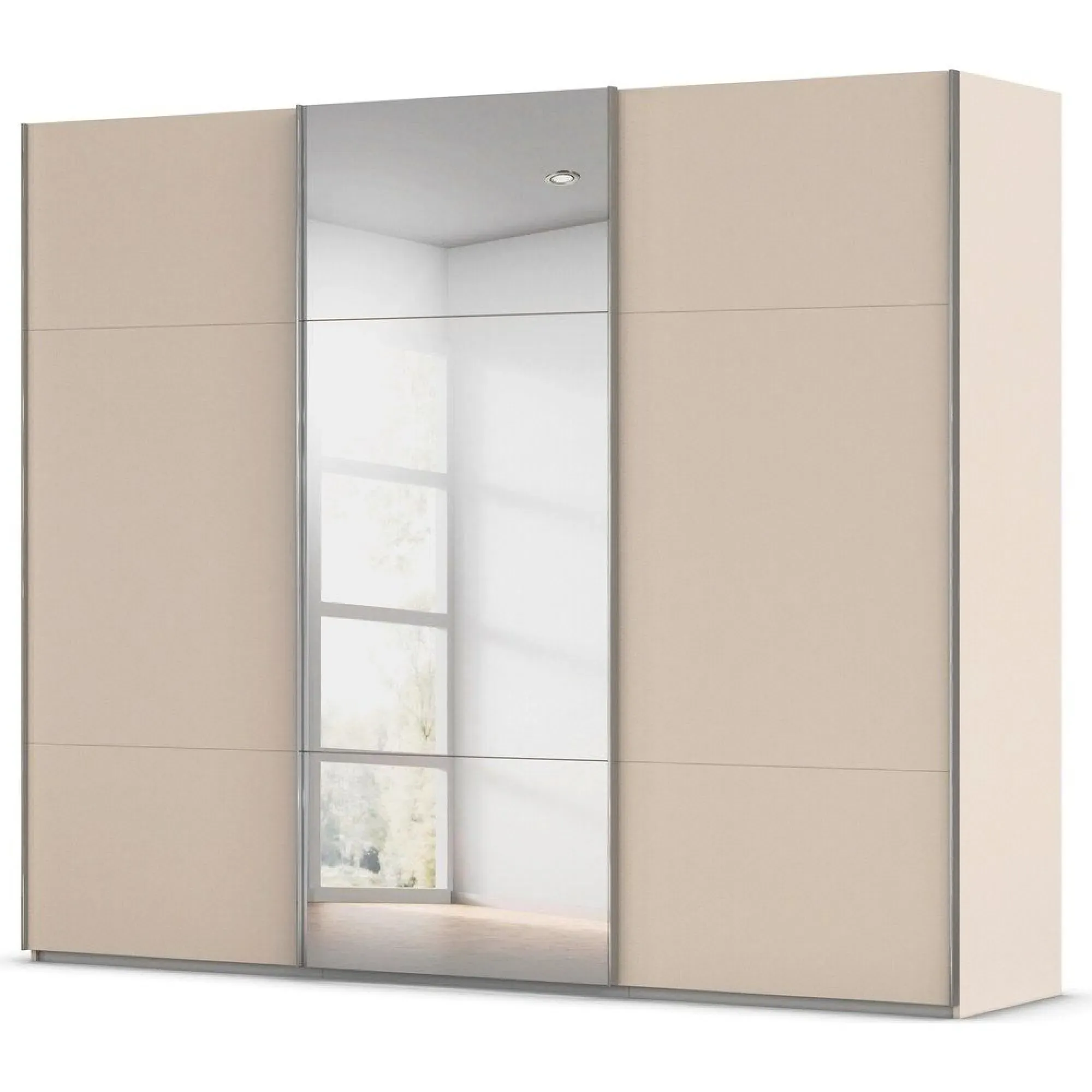 Rauch Contido 271cm 3 Door Sliding Mirror Wardrobe with Extras - Silk Grey - 0KW4/ A815A, available to buy online or at Choice Furniture Superstore UK on stockist sale price. Get volume - discount with fast and Free Delivery.