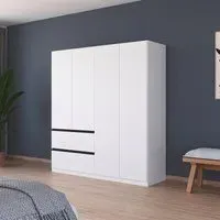 The Costa wardrobe combines spacious storage with its four-door design and integrated drawers. Its 181cm width provides ample hanging space, while the drawer compartments offer organized storage for smaller items. The Alpine White finish adds a clean, bright appearance to any bedroom, and the sturdy construction ensures long-lasting durability.