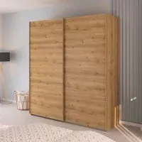 The Evelyn wardrobe offers streamlined storage with its 2-door sliding design. The sliding mechanism saves valuable floor space, while the Alpine White finish provides a bright, clean appearance. Its dual-door configuration ensures generous hanging capacity, and the smooth-operating hardware delivers reliable daily use. Measuring 201cm in width, it accommodates extensive clothing storage needs.