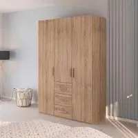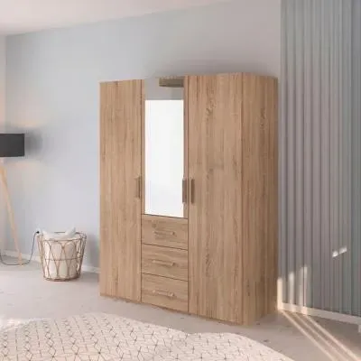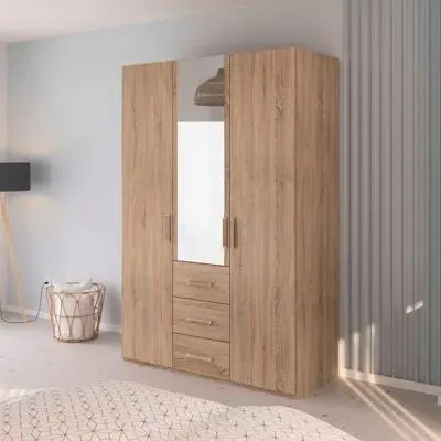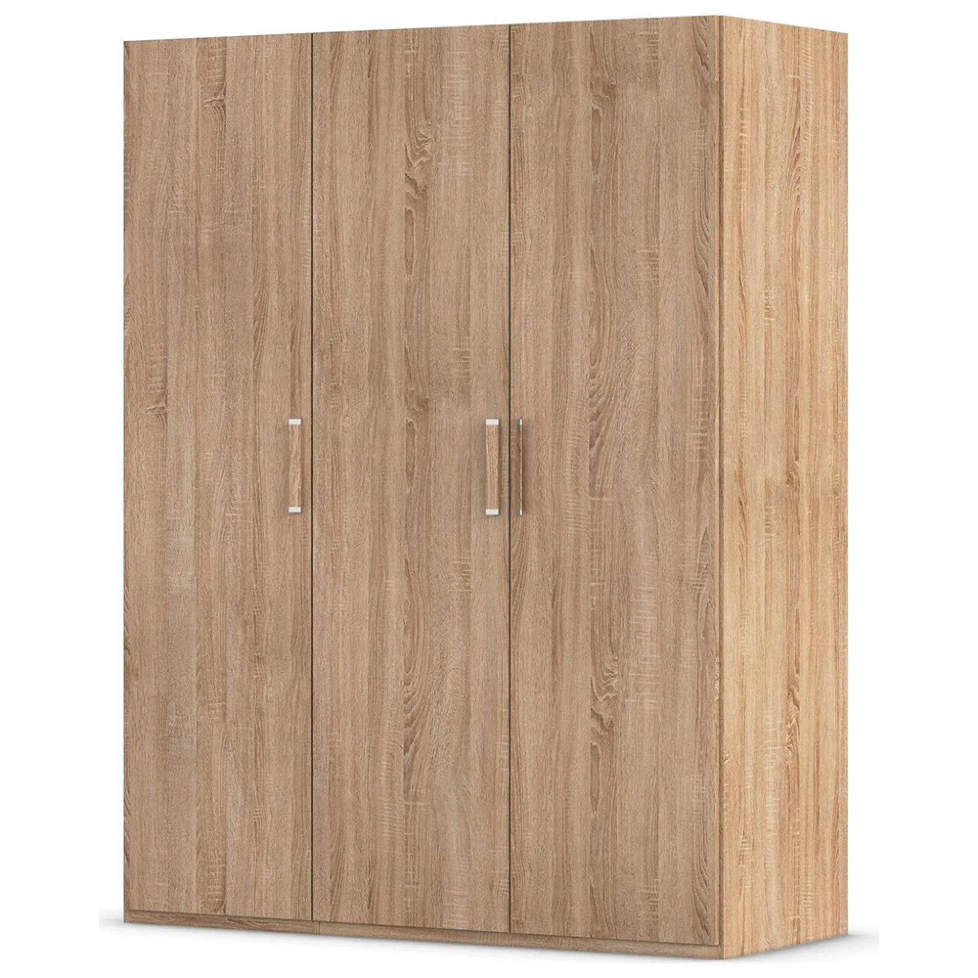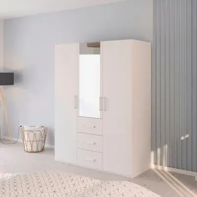 The Evelyn wardrobe combines practical storage with a clean Alpine White finish that brightens any bedroom. Its three-door design provides organized storage compartments, while the smooth surface finish adds a fresh, contemporary look. The robust construction ensures reliable daily use, and the wardrobe measures W151 x H197 cm for optimal storage capacity.