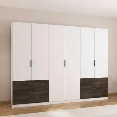 Rauch Koda 271cm 6 Door Wardrobe with RHF Drawers - Alpine White - 09L4/ AG927, available to buy online or at Choice Furniture Superstore UK on stockist sale price. Get volume - discount with fast and Free Delivery.