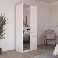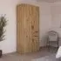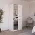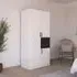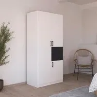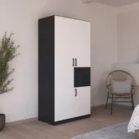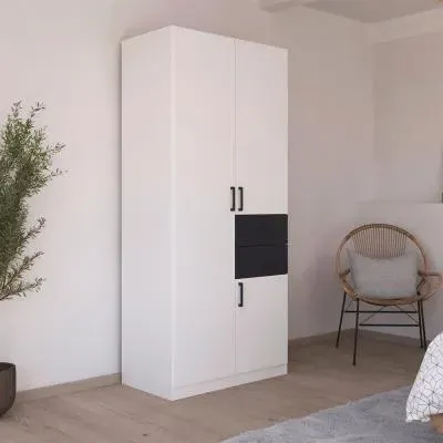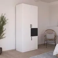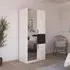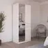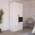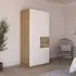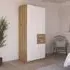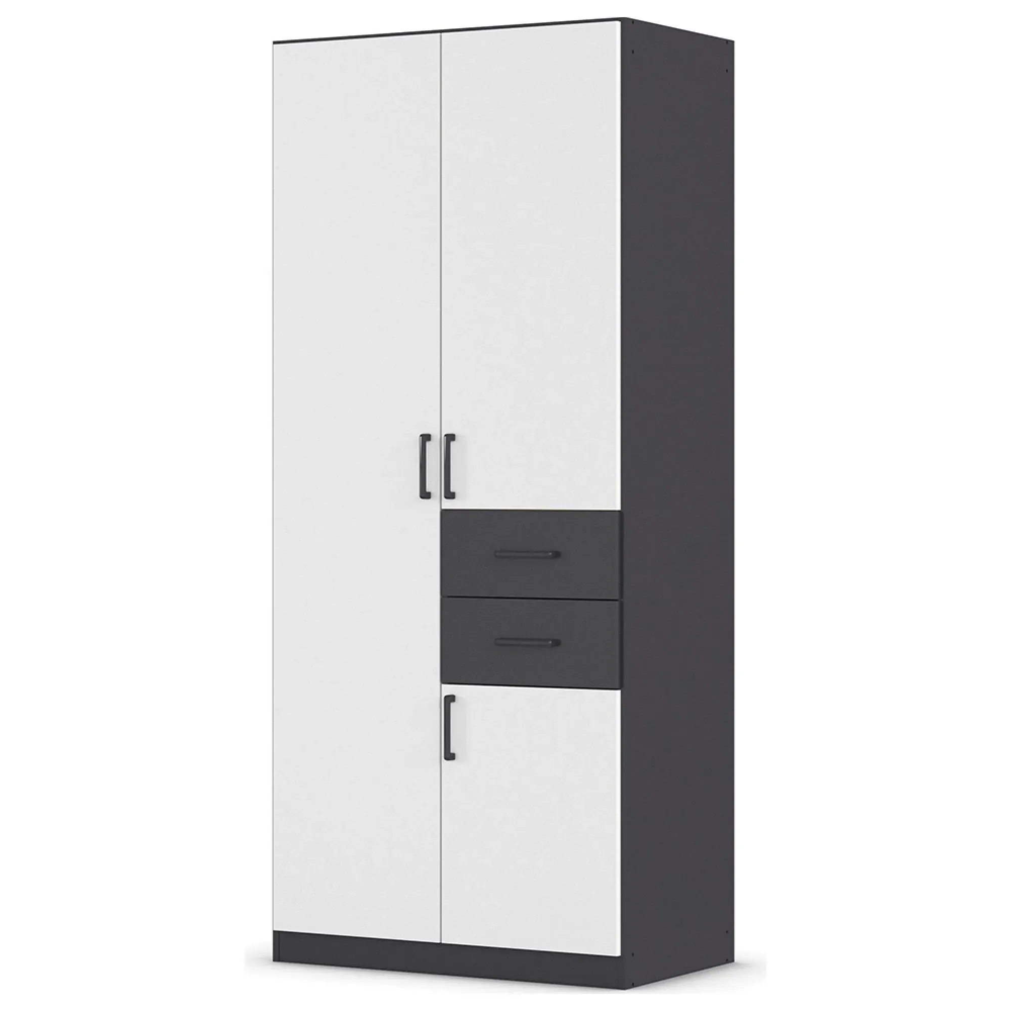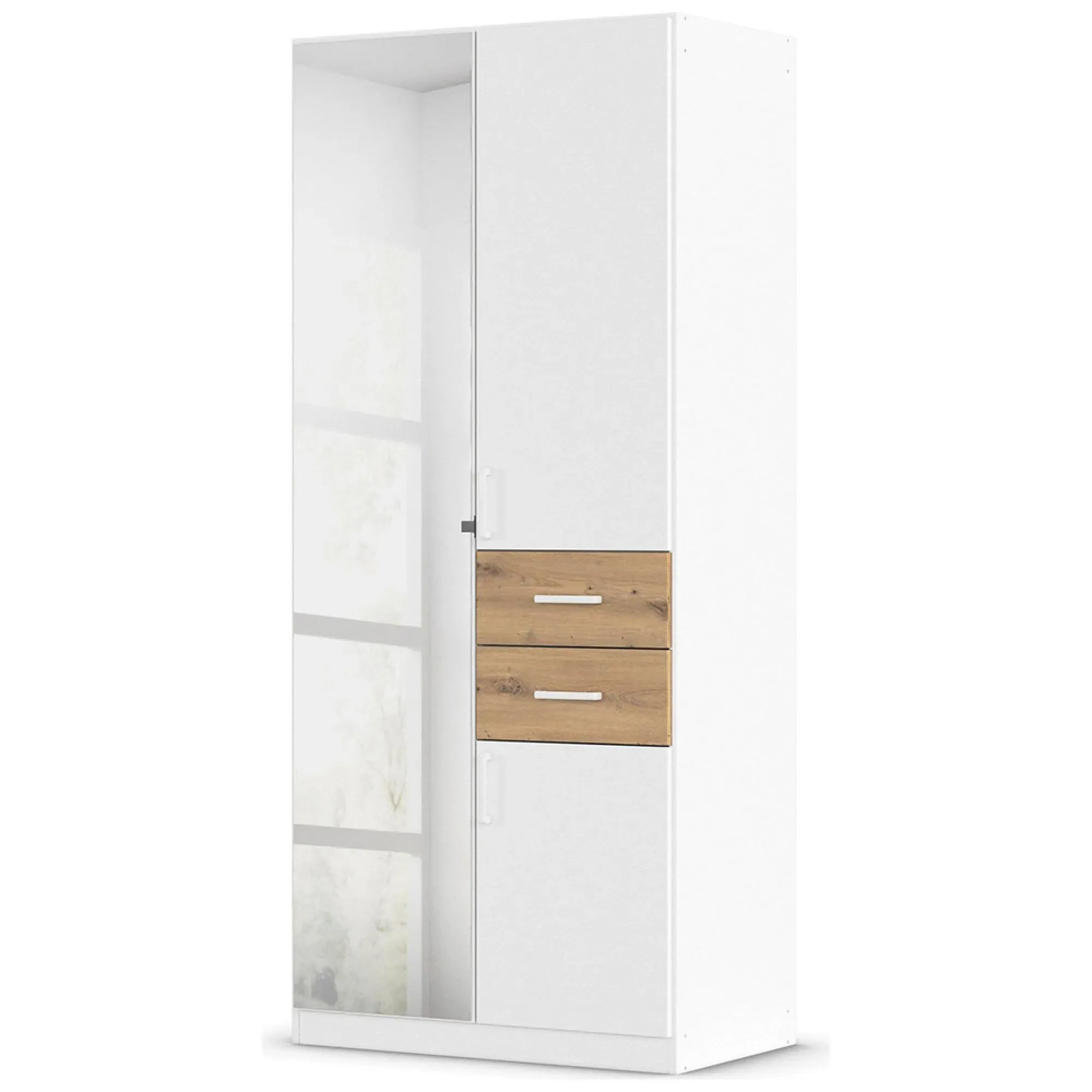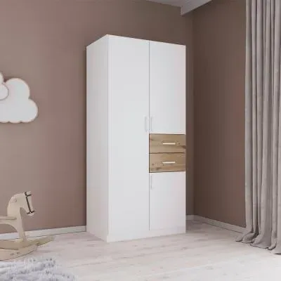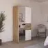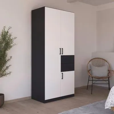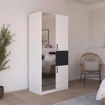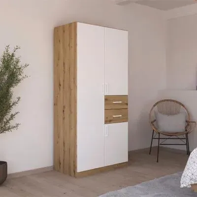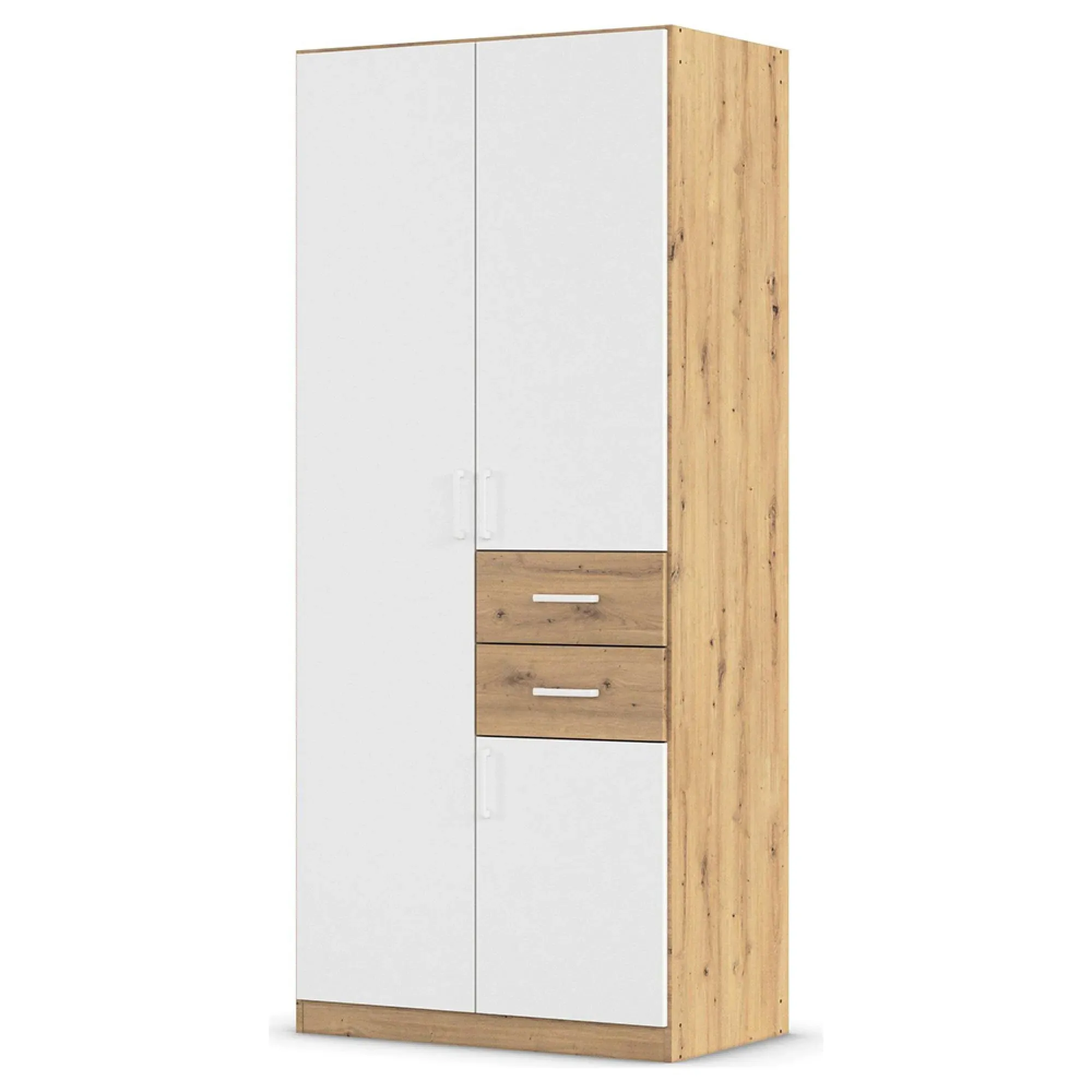 The Maika wardrobe provides comprehensive storage with its three-door structure, showcasing Metallic Dark Grey and Artisan Oak finishes for a striking two-tone effect. Its generous interior accommodates extensive clothing collections, while the natural oak grain adds warmth to the metallic base. The wardrobe delivers both functionality and visual appeal. W91 x H197 cm.